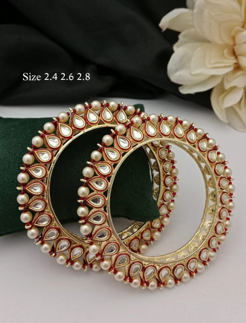 Exquisite Kundan, pearl and red beads, the epitome of elegance - crafted with precision and adorned with sparkle, these bangles exude timeless beauty.