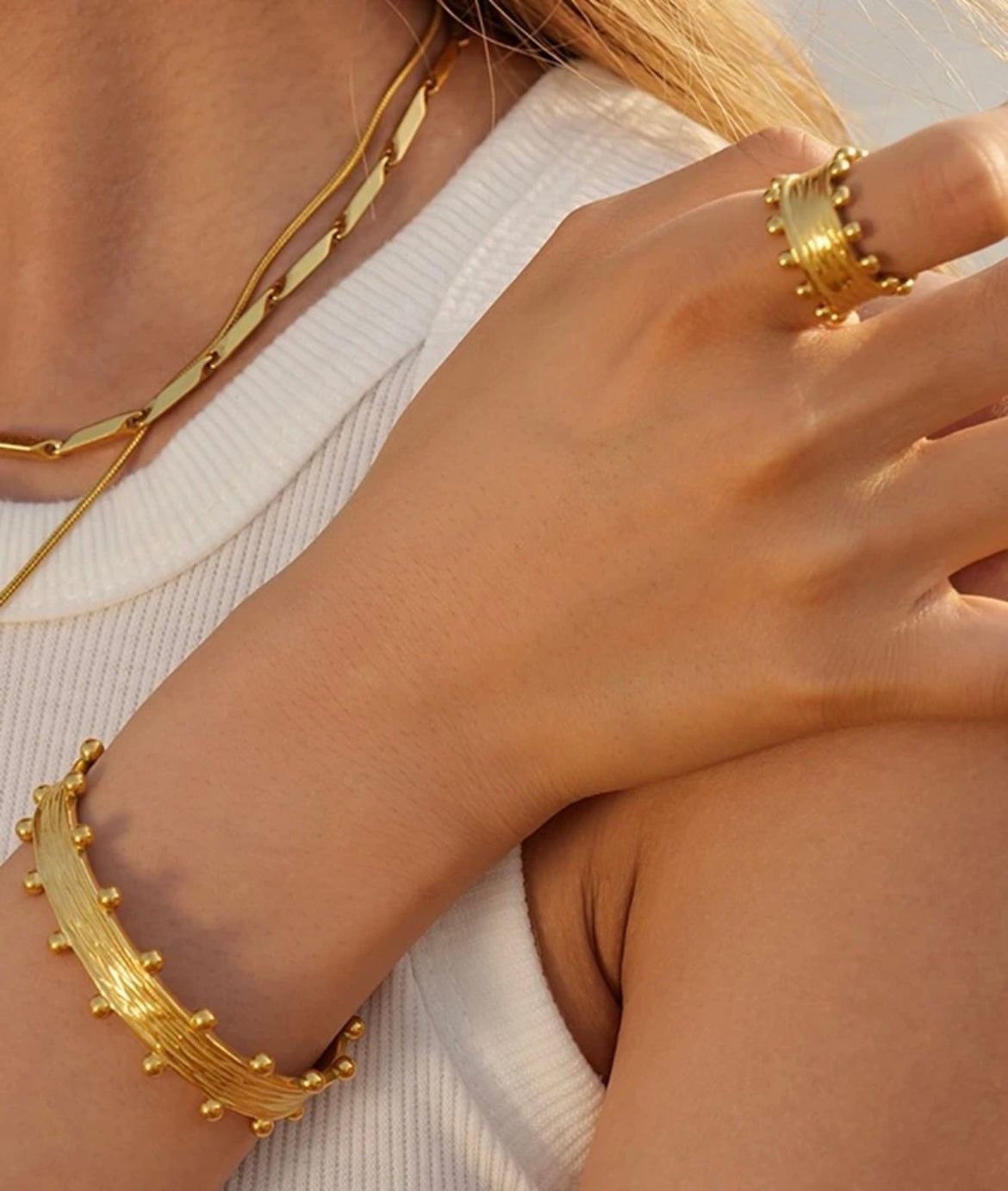 The jewelry is made of gold-plated material,modern and fashionable, suitable for dailywear.
