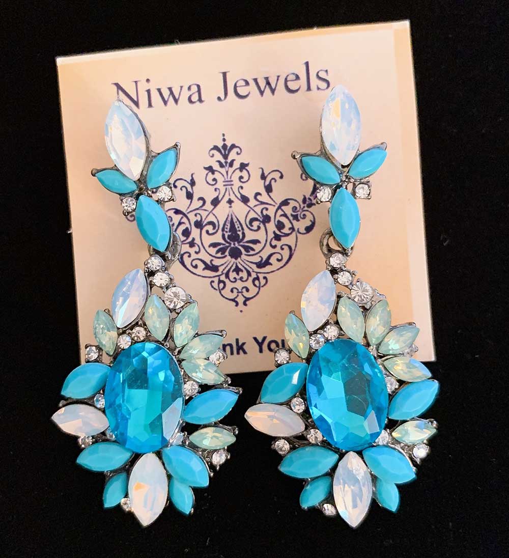 Beautiful pair made only for you features blue stone and cz. This pair is a must have addition to complete your look.