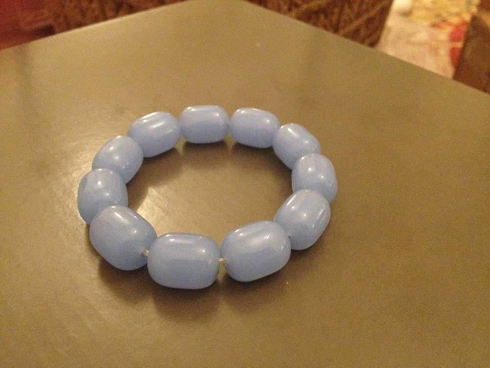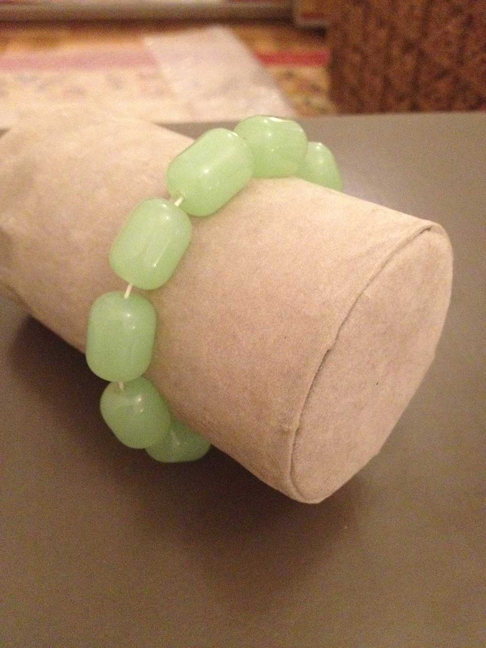 A bracelet of light green oval beads, strung elegantly for a subtle and refined charm.