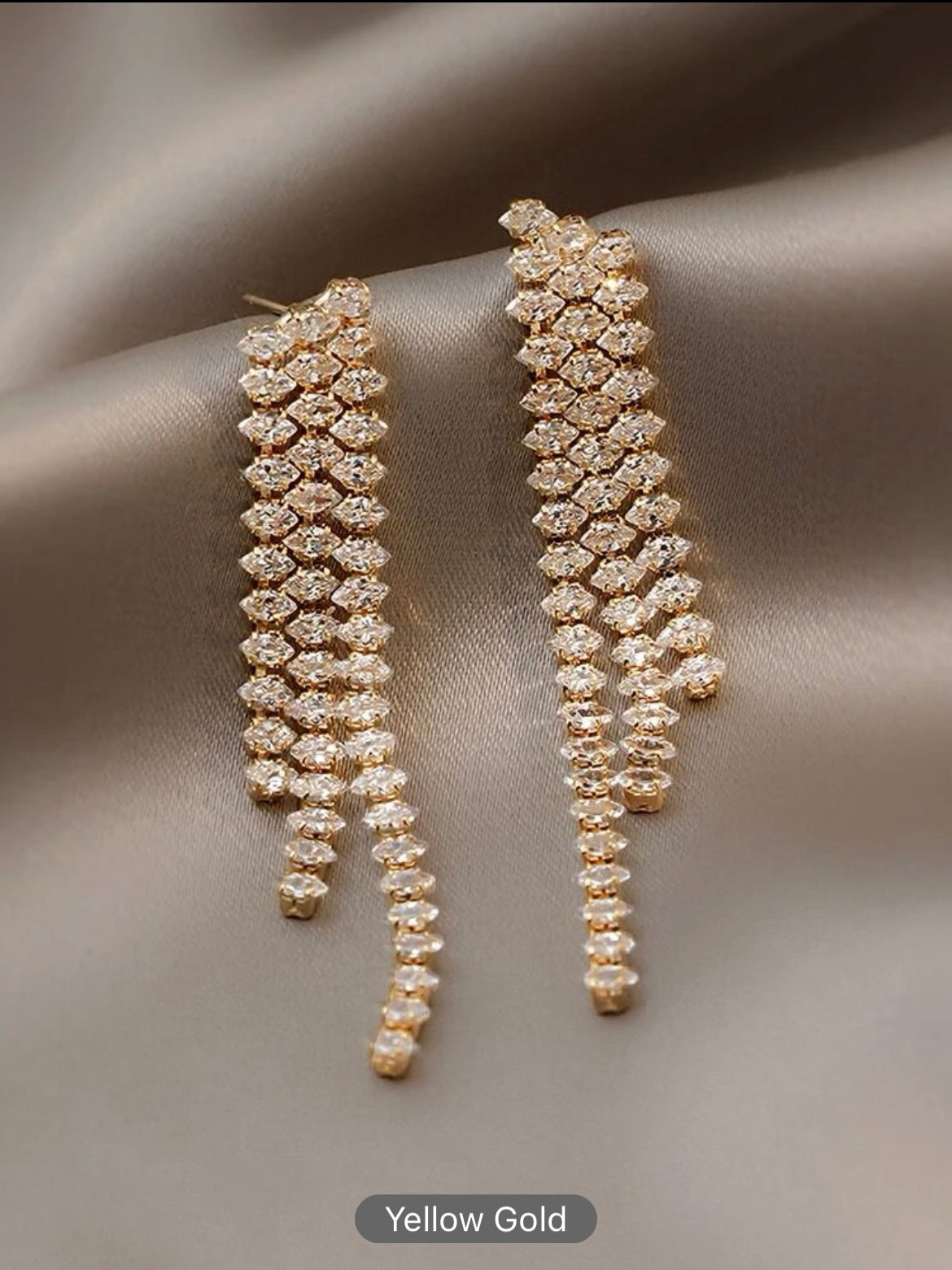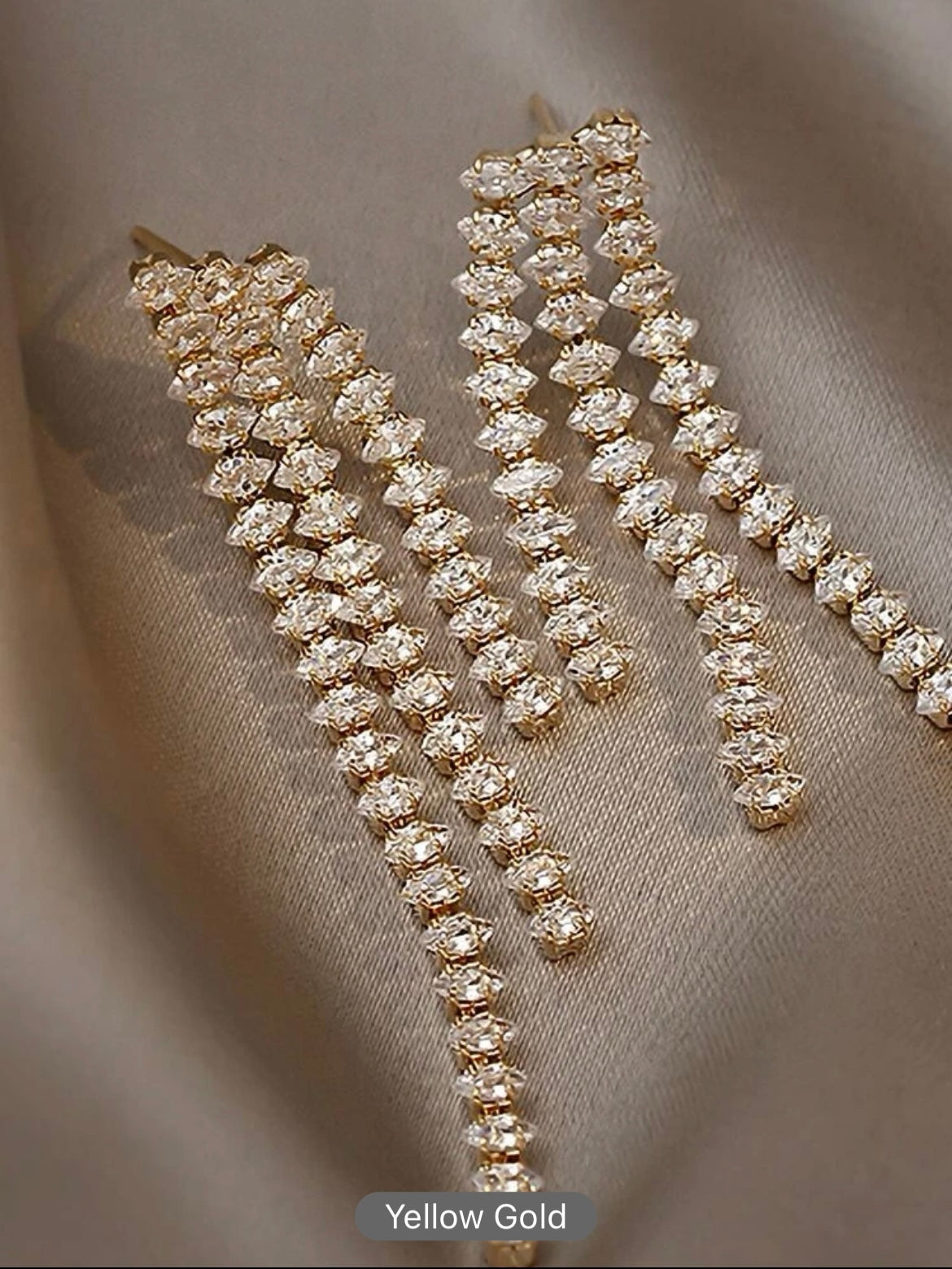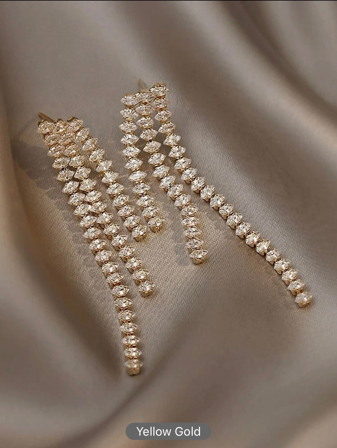 Graceful pearl drop earrings featuring cascading rows of small, round pearls, exuding timeless elegance and sophistication.
