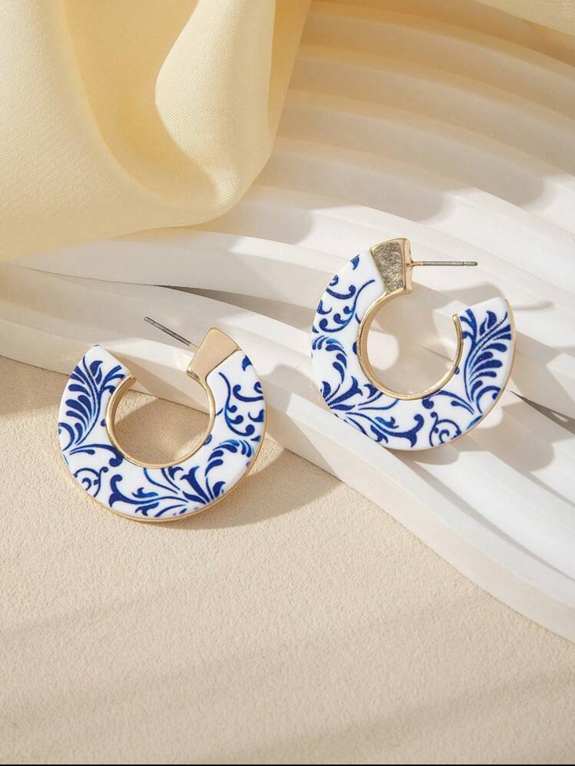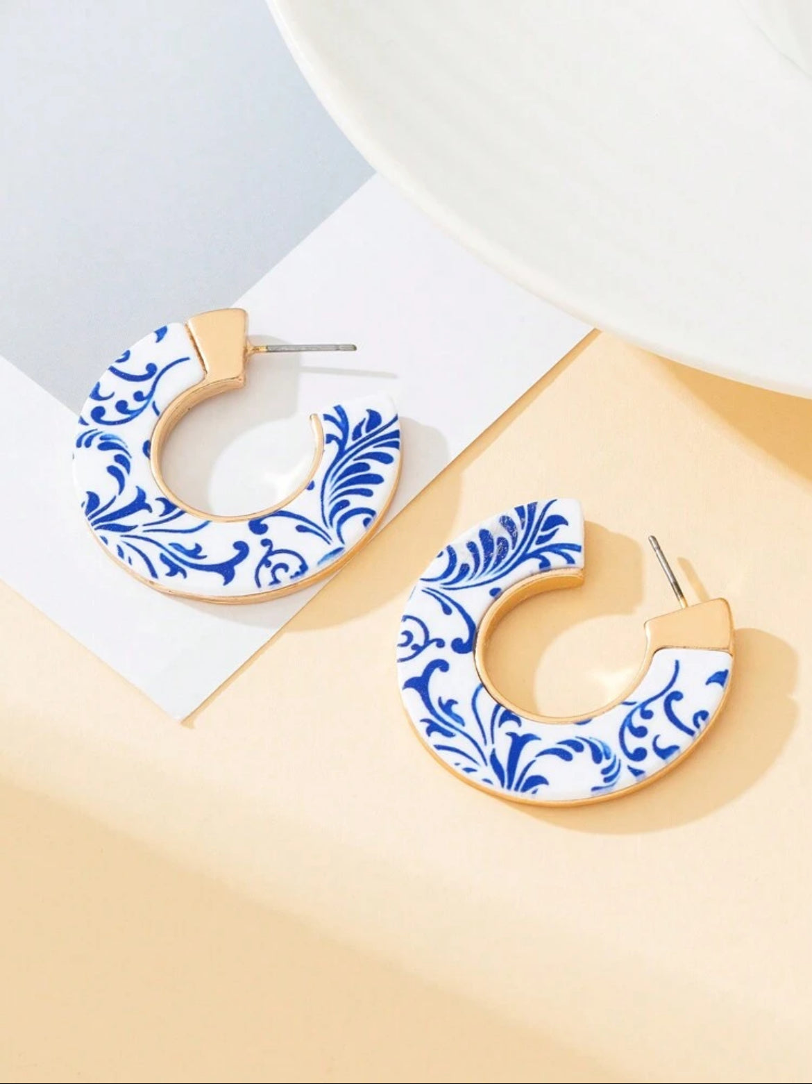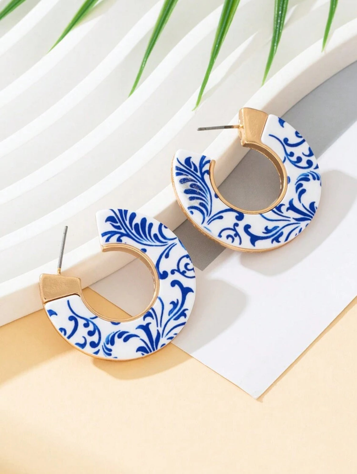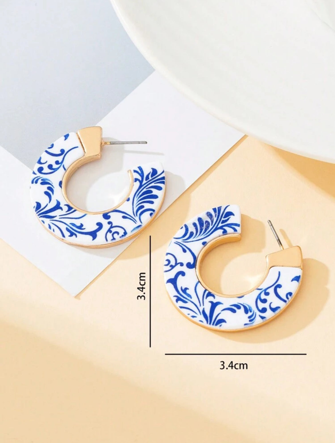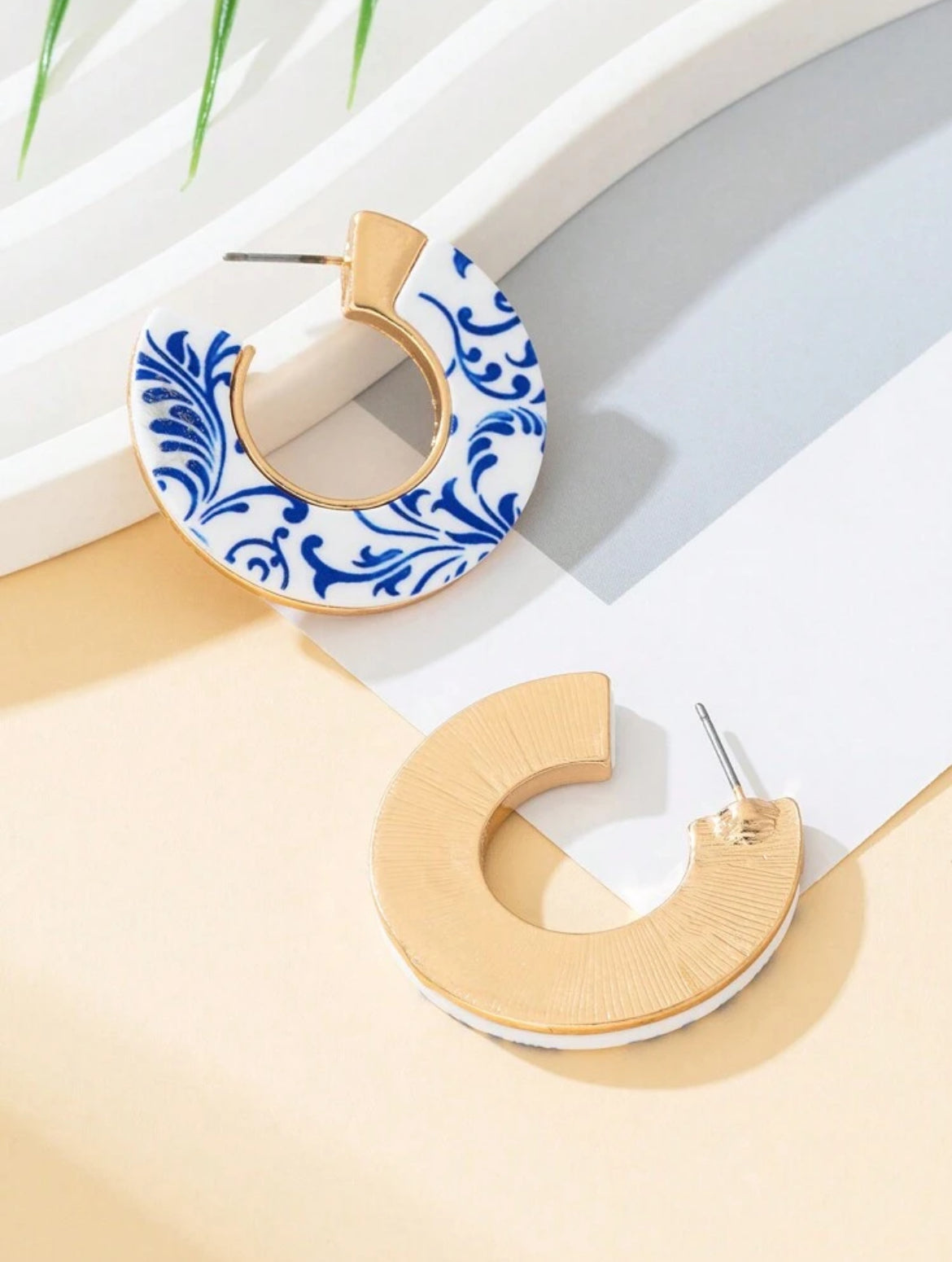 A modern twist on timeless charm. These hoops blend bold blue florals with sleek gold detailing - a playful statement for everyday elegance.