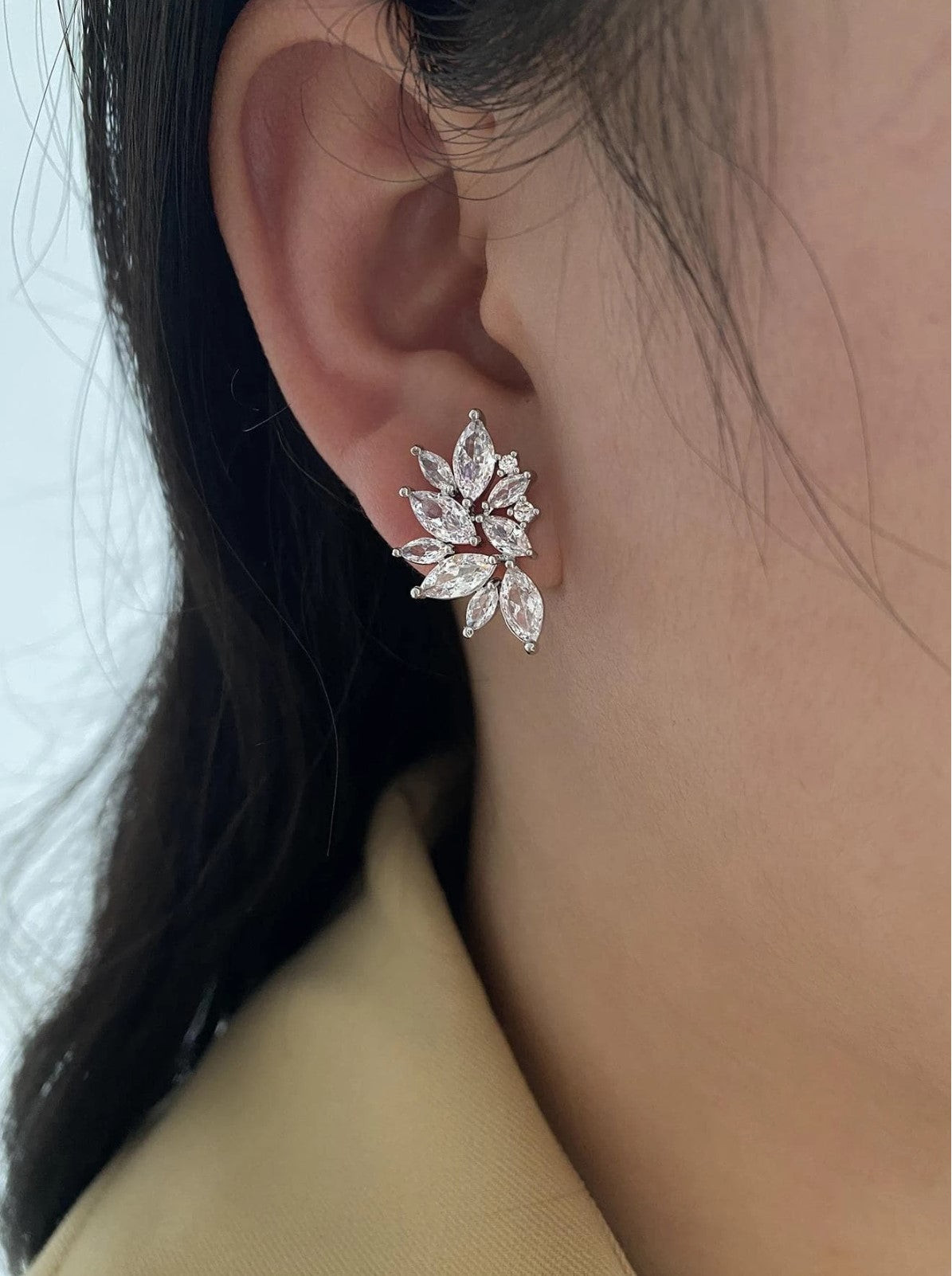 Graceful marquise-cut gemstone earrings in a floral design, exuding timeless elegance.