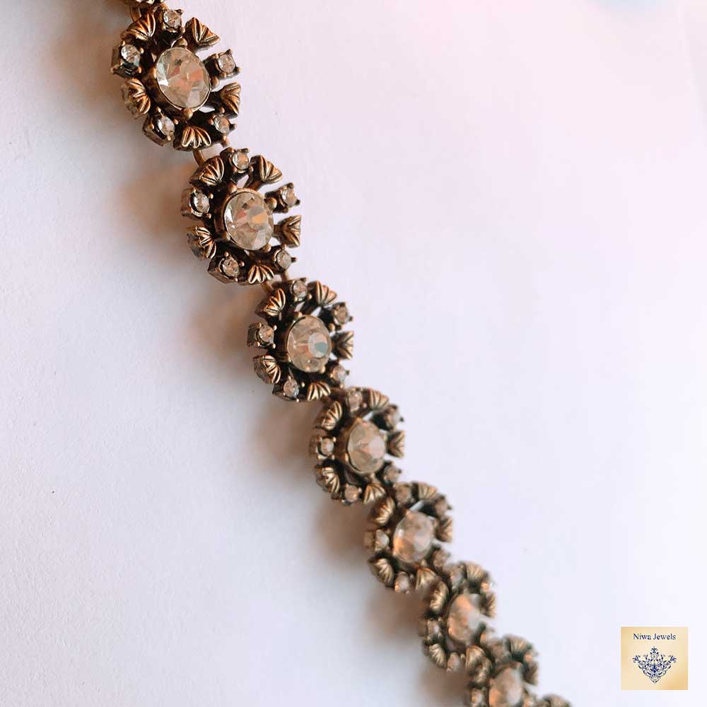 A vintage-style bracelet with circular gemstone accents and intricate detailing, exuding timeless elegance.