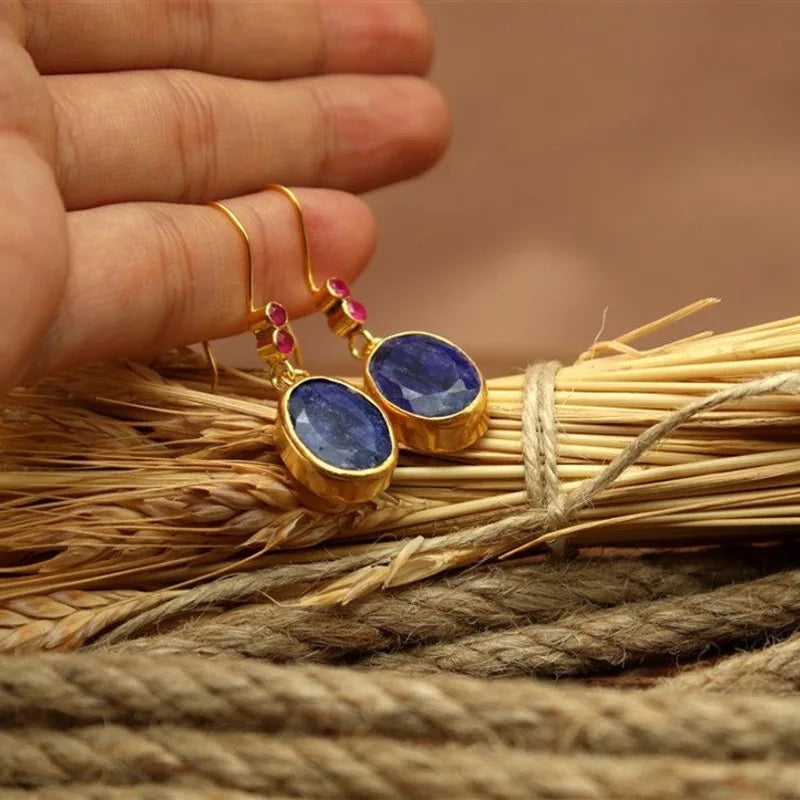 These earrings are sure to grab attention every time you step out! Crafted in round blue stone with touch of gold . A versatile pair of earrings that will make every occasion brighter.