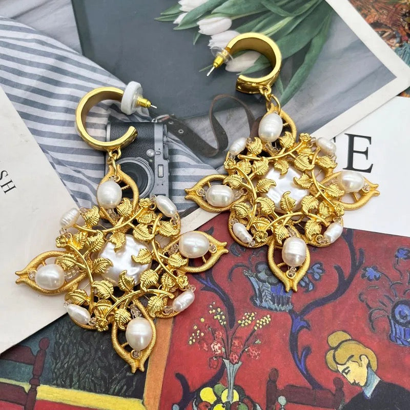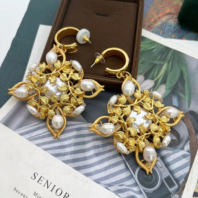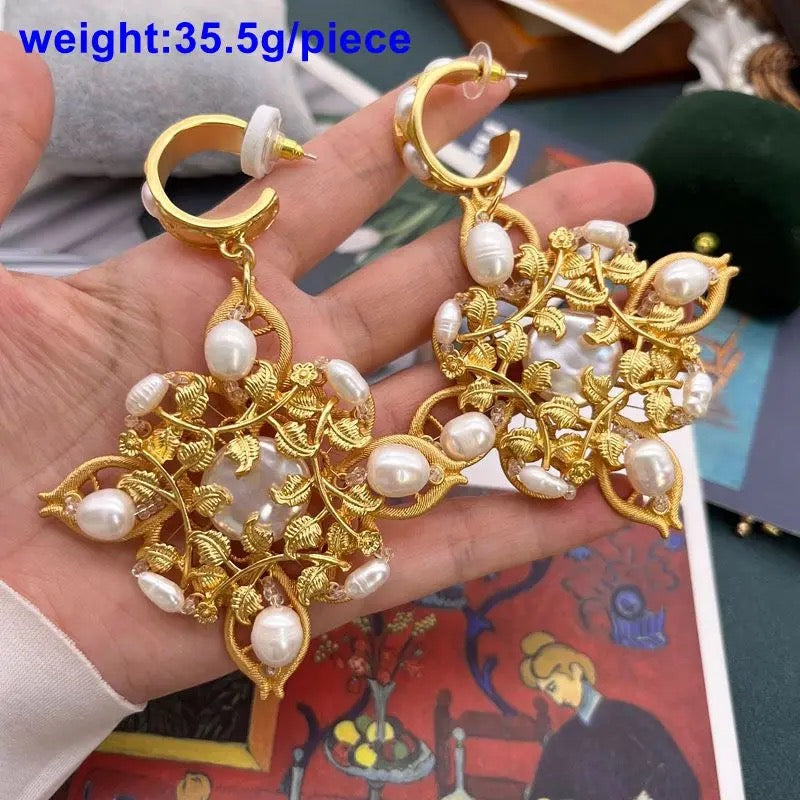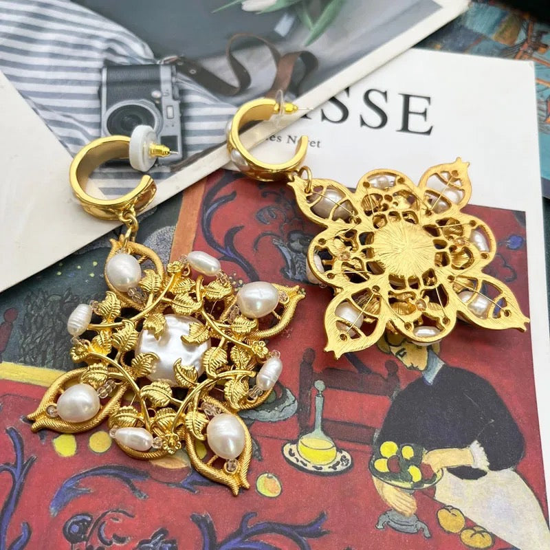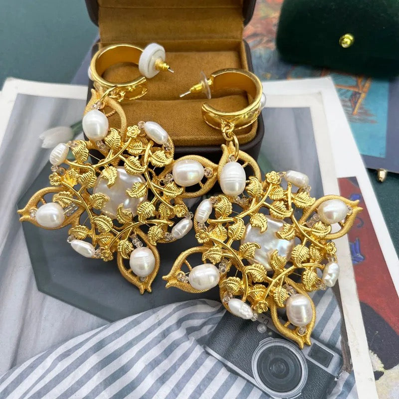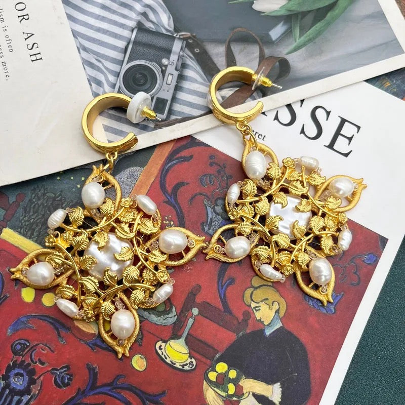 You just cant miss these beautiful pair of earrings crafted with beauty of flowers with silver rhinestones and pearl an elegant take on a statement jewellery, stunner match for every occasion.