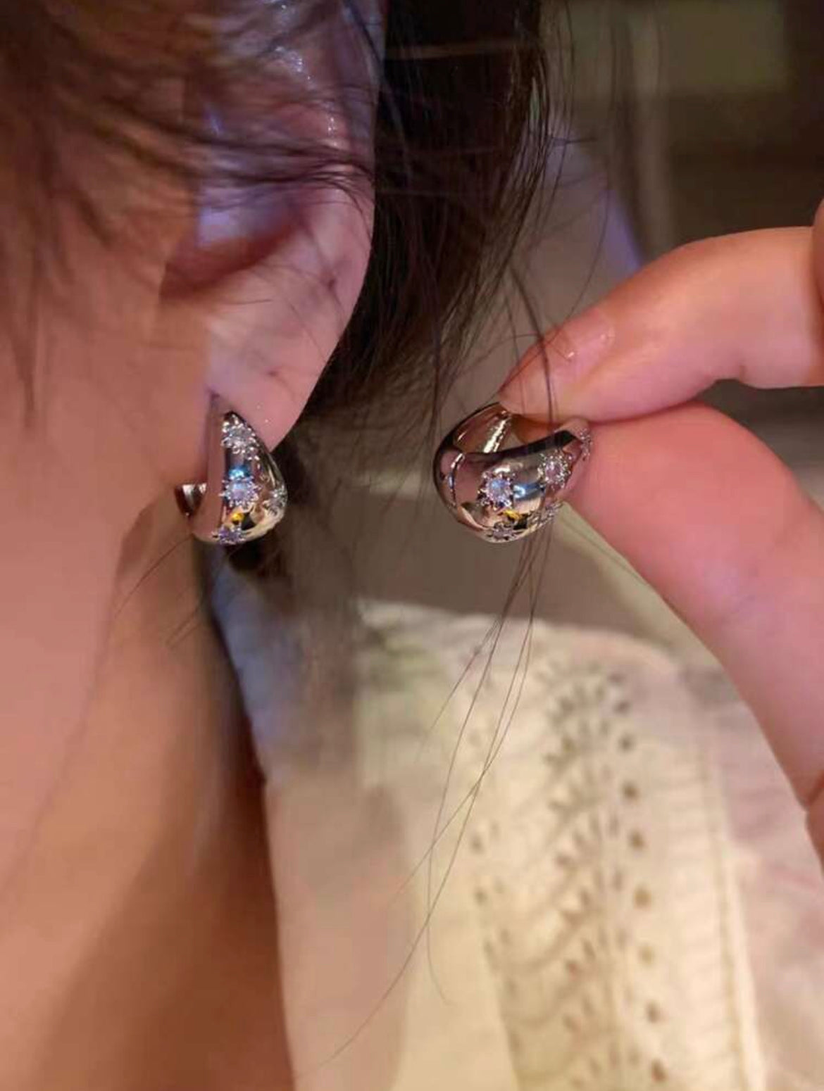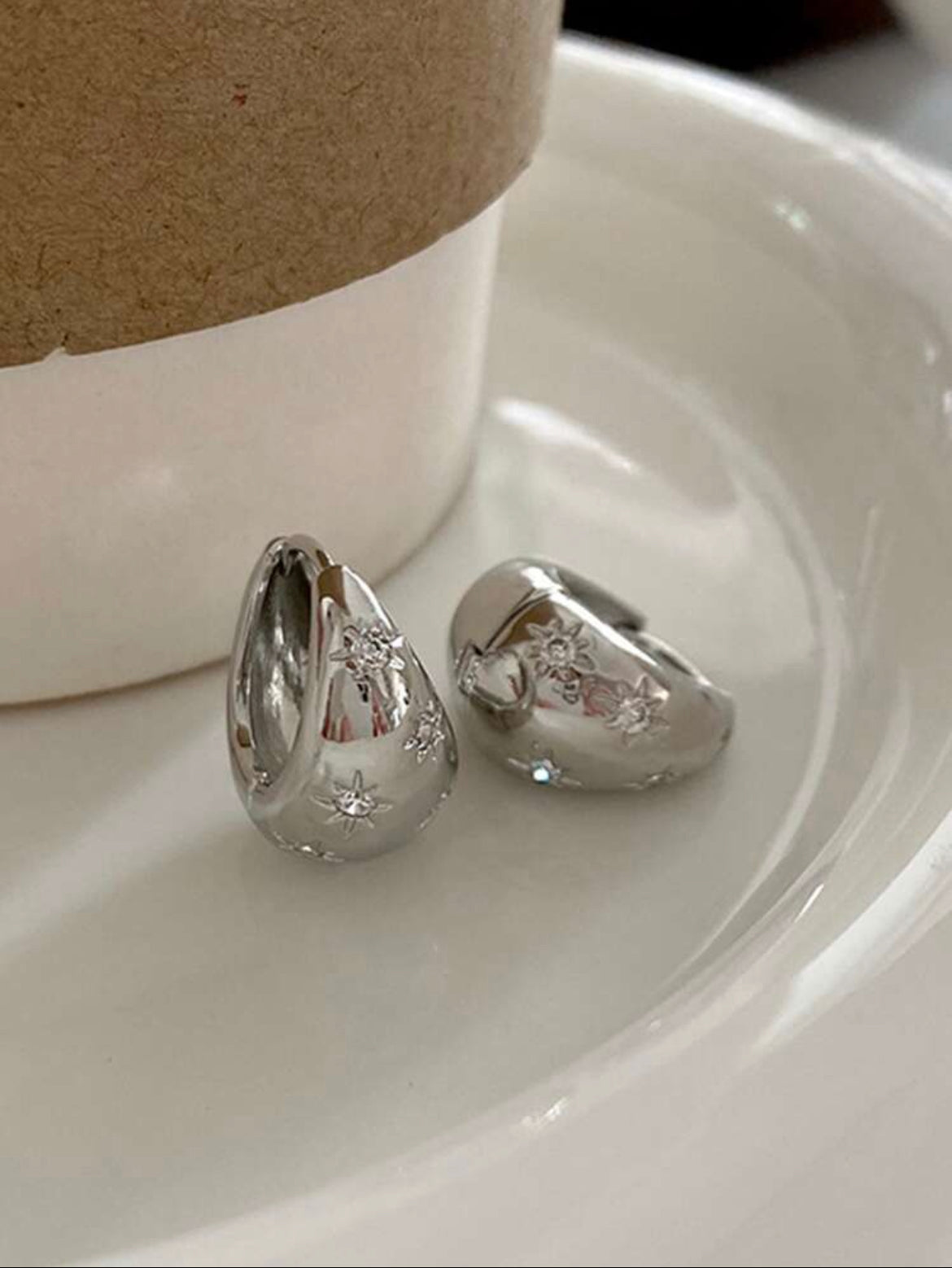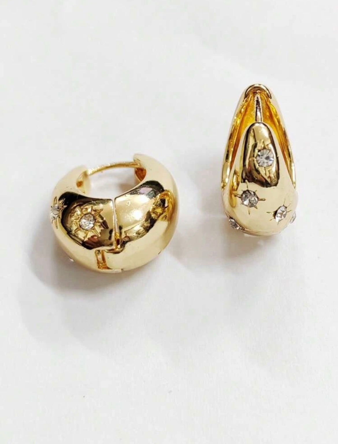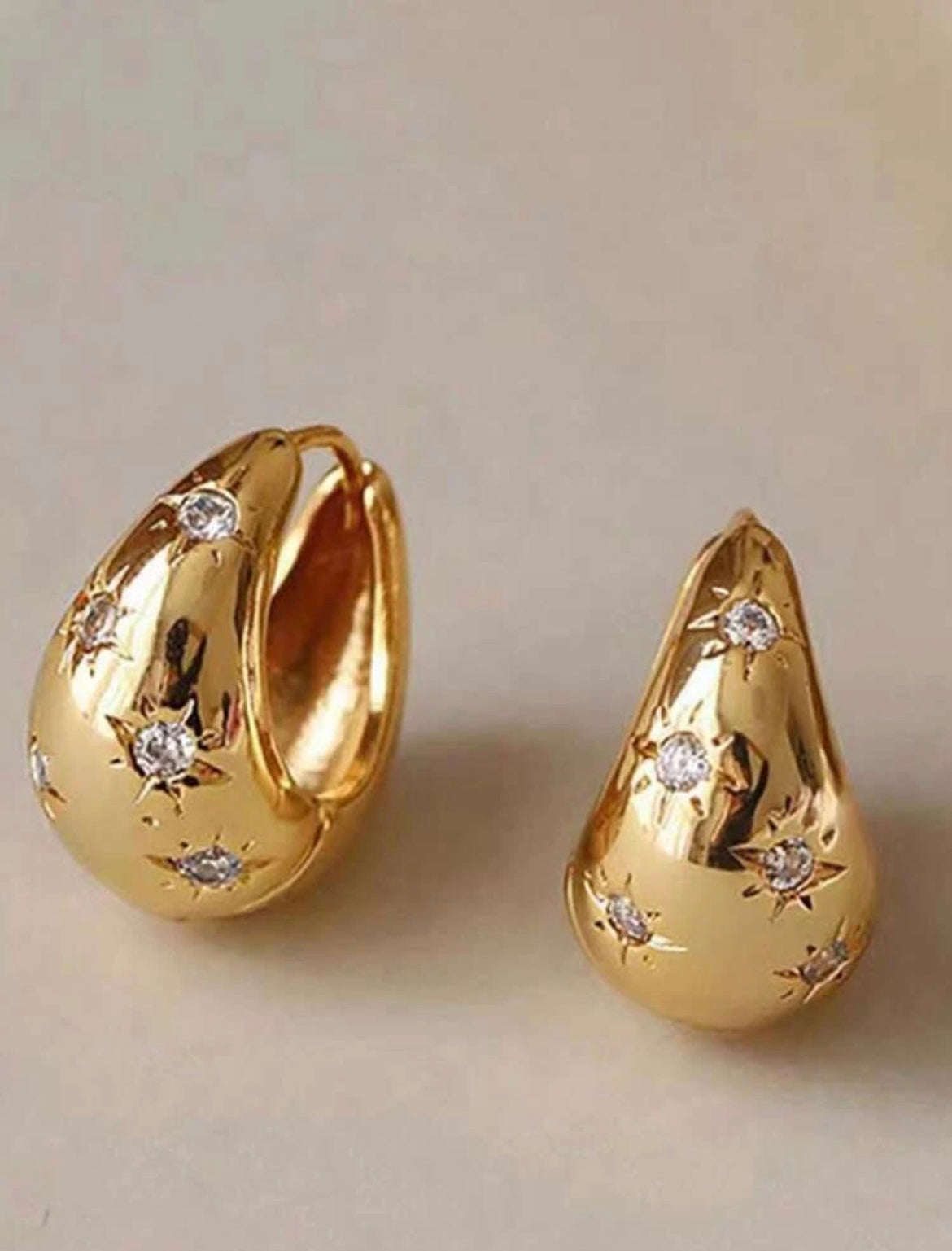 Delicate and small hoop earrings, pointed star pattern,made of zinc alloy with a gold plating,vintage luxury style.