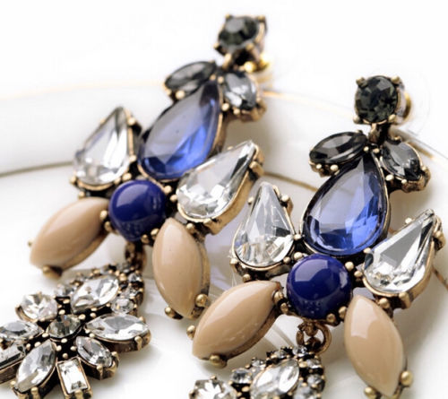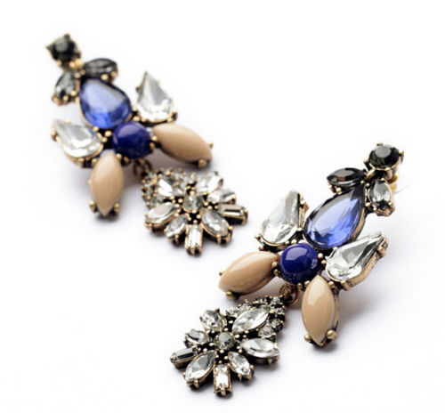 Intricate gold earrings featuring a translucent triangular stone at the center, surrounded by clear round stones, radiating timeless elegance and traditional charm.