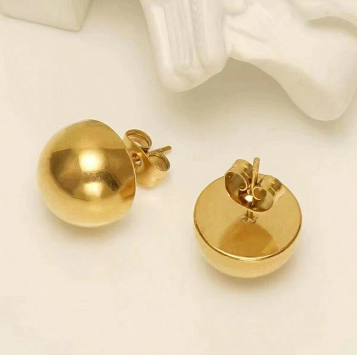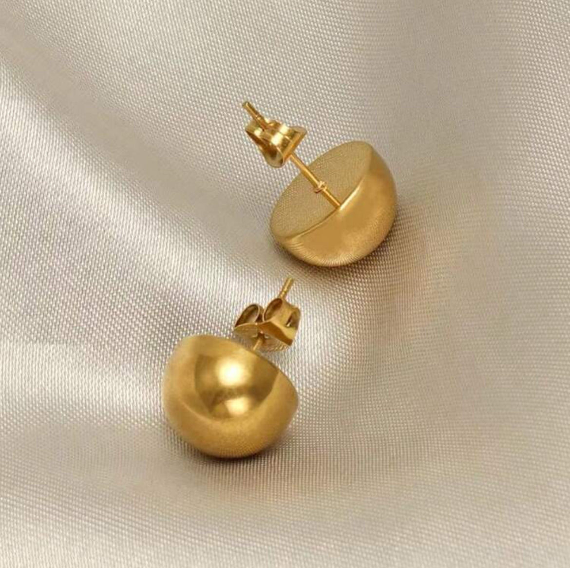 Gold-plated, half-sphere studs and have smooth polished finish.