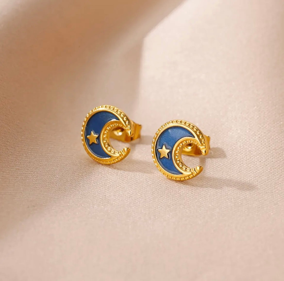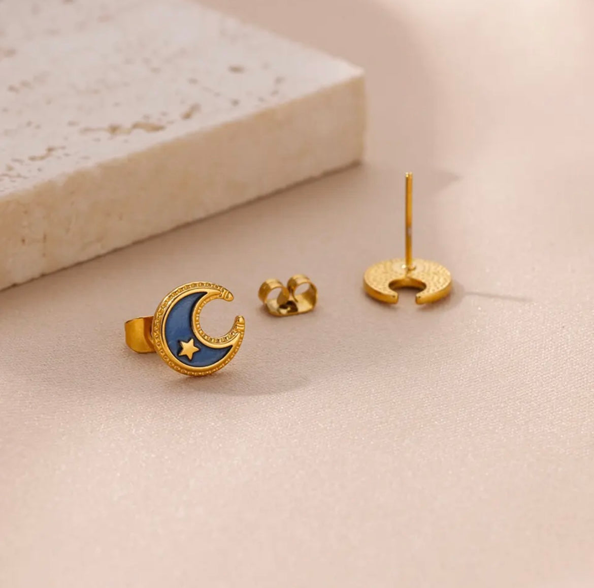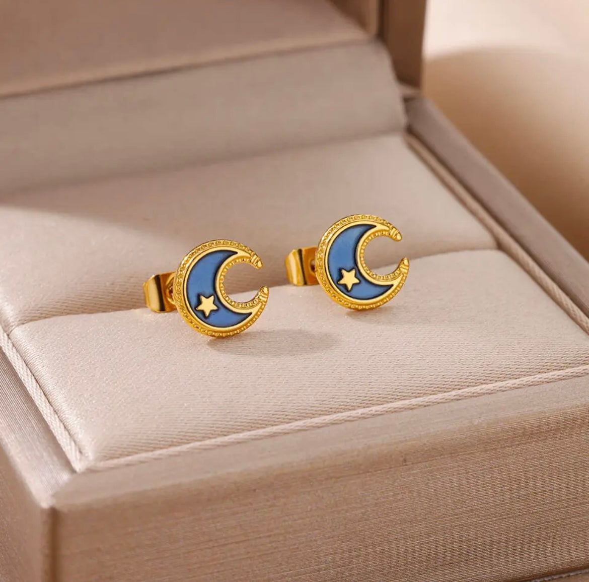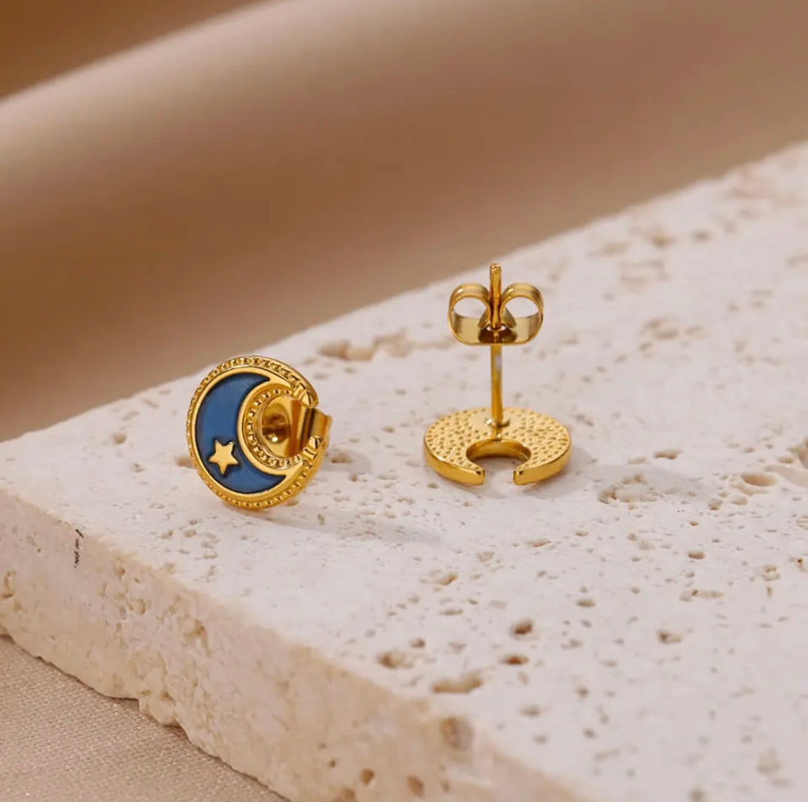 Pair of studs with a crescent moon design in sky blue colour, perfect choice for everyday whimsical wear.