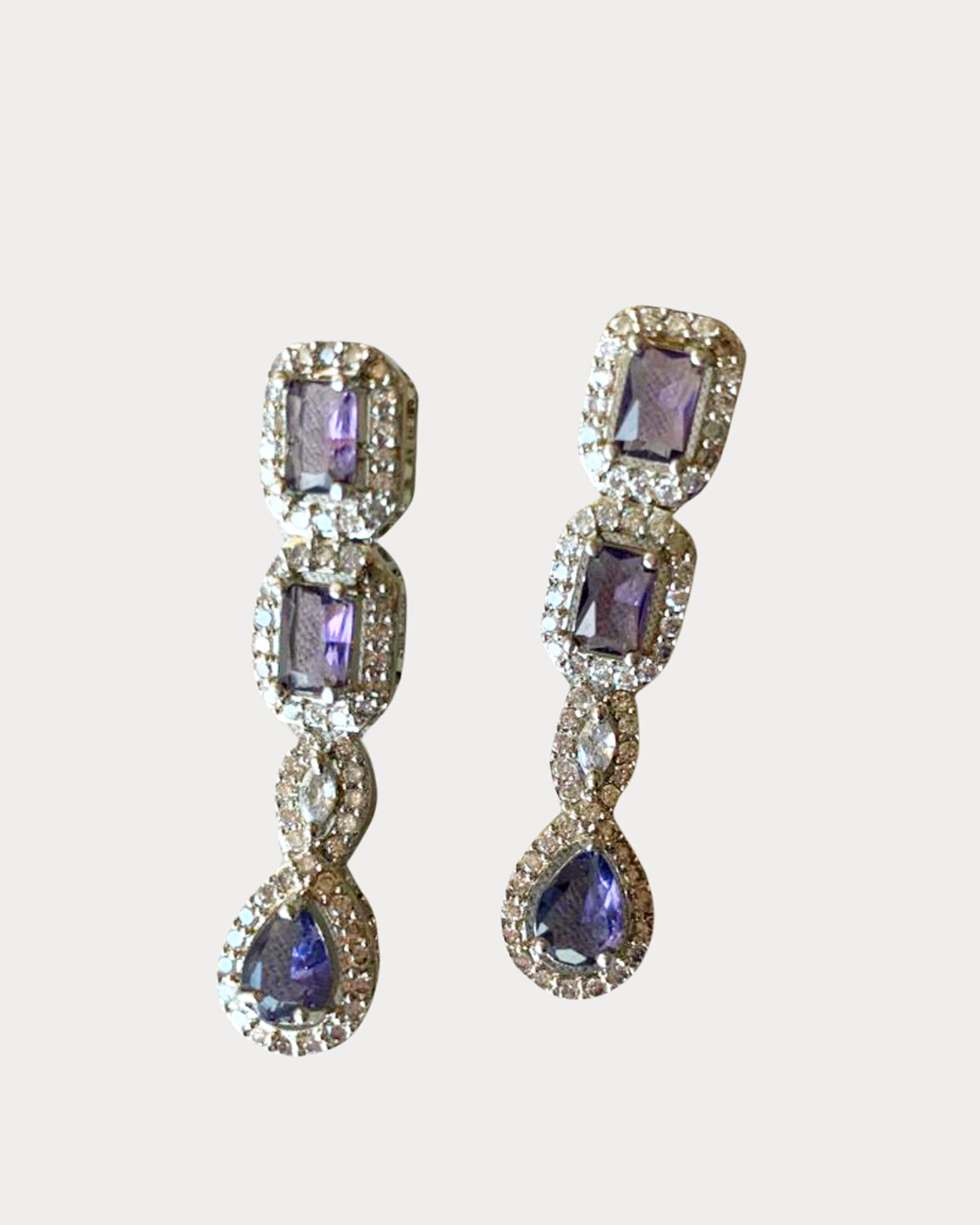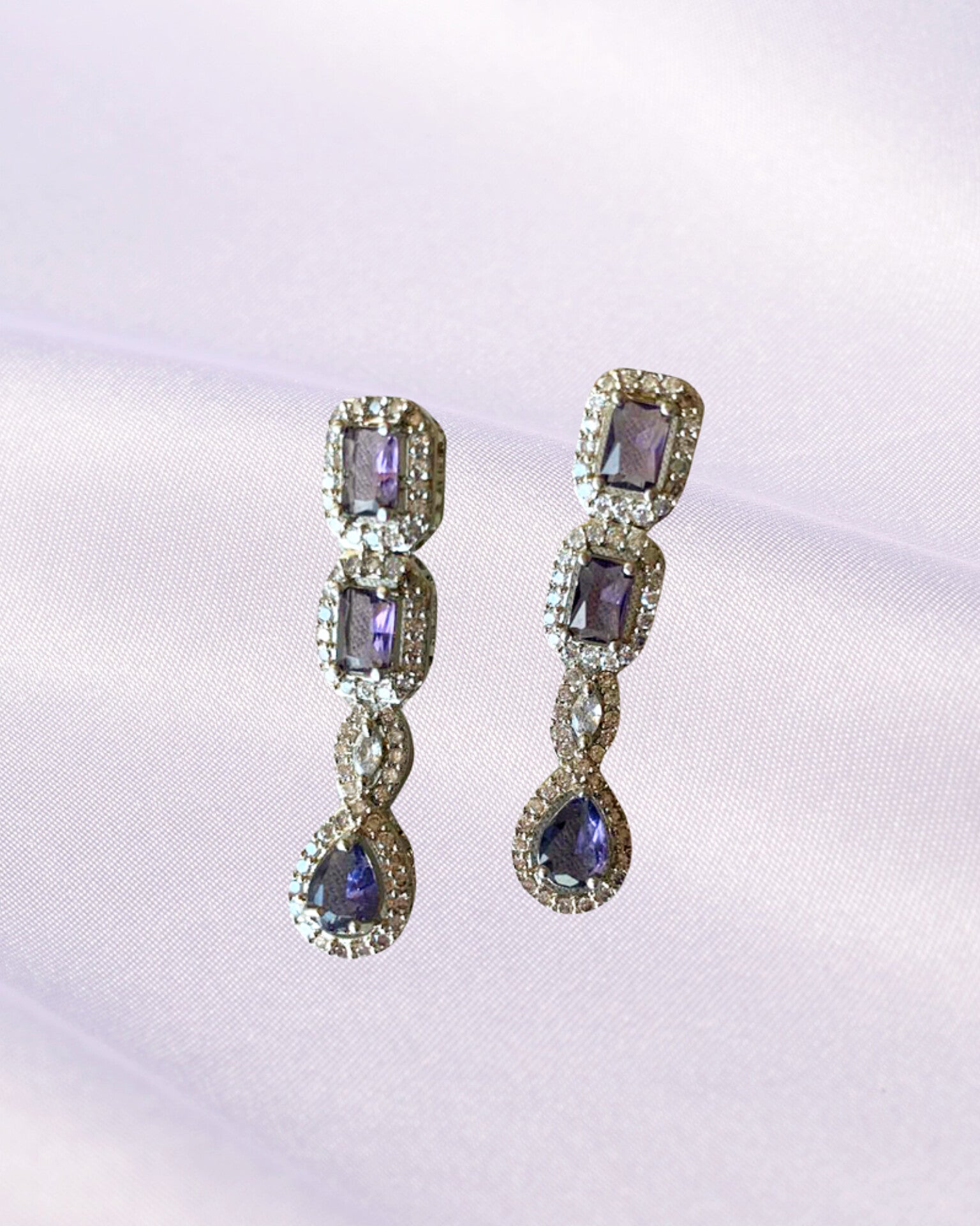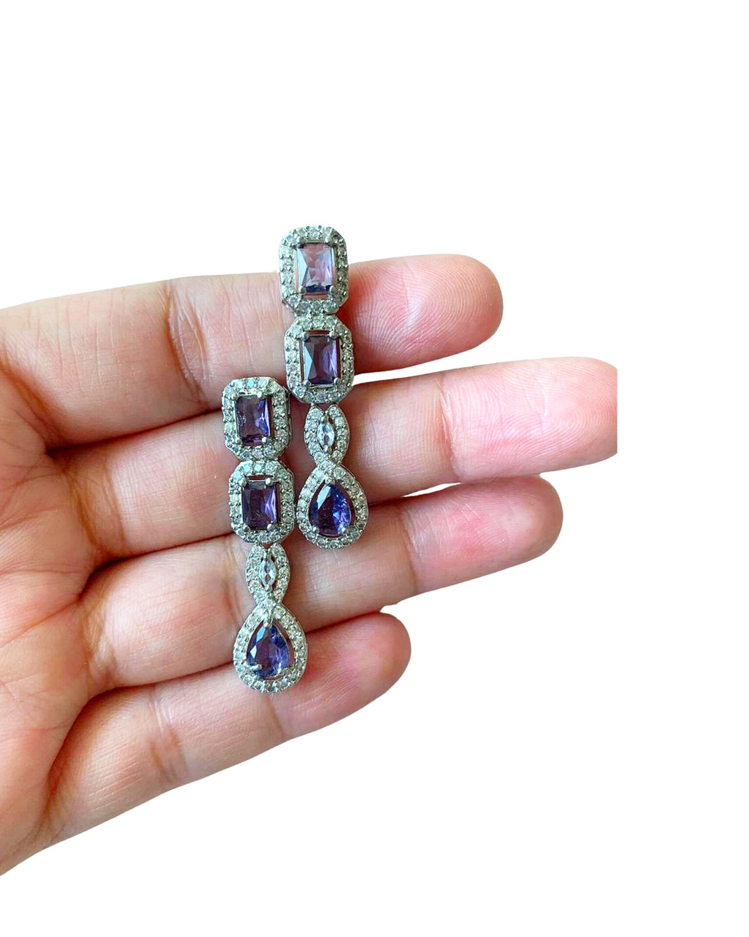 A dance of brilliance-amethyst gemstones embrace shimmering cz in a delicate, regal cascade. These earrings whisper elegance with every glimmer.