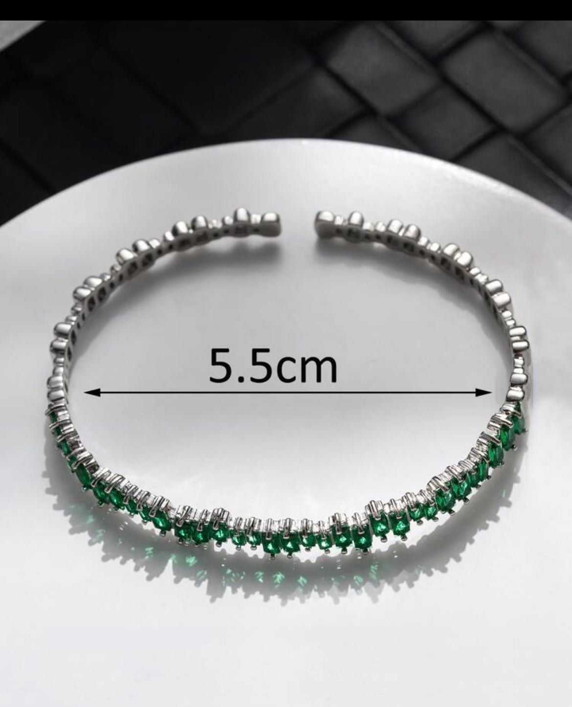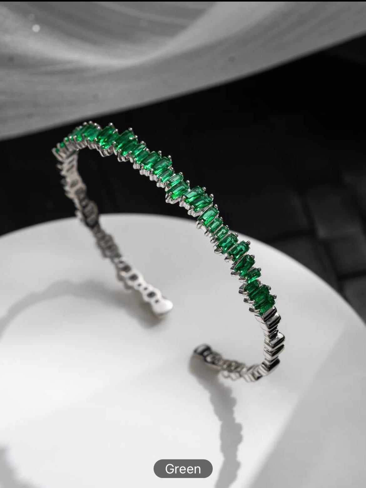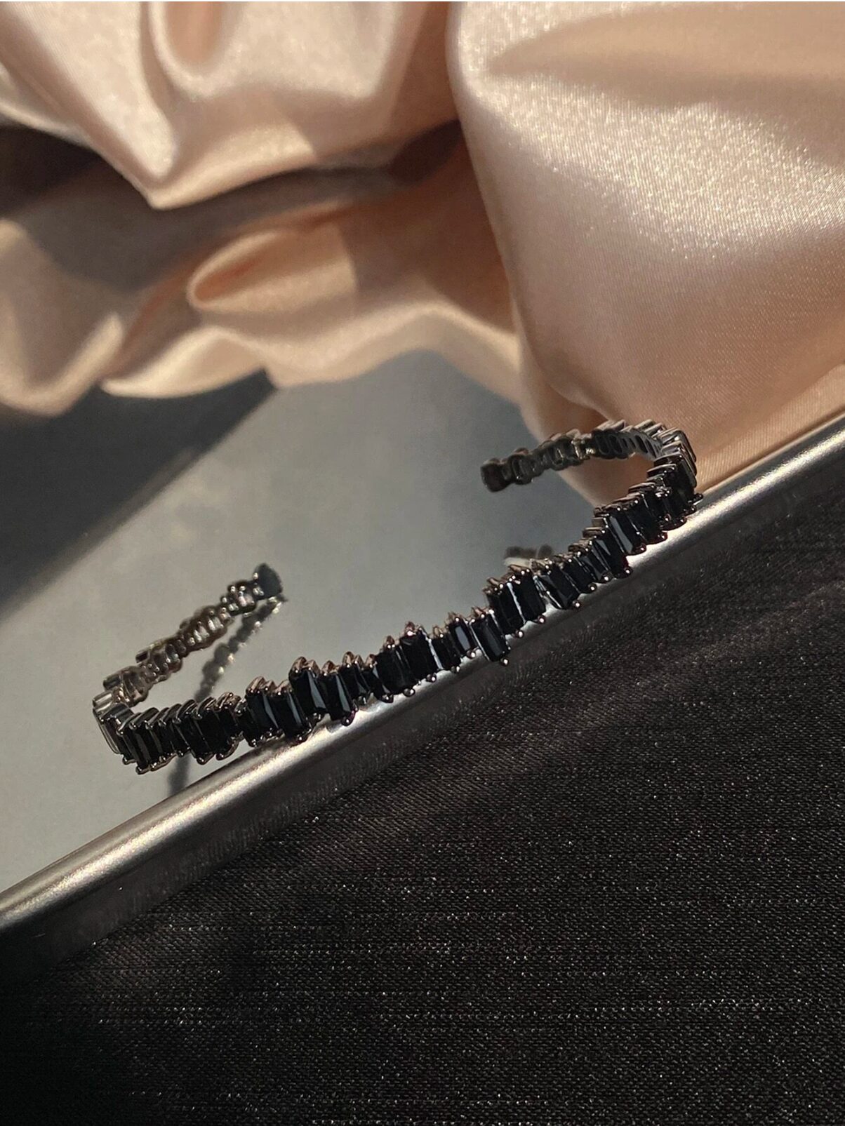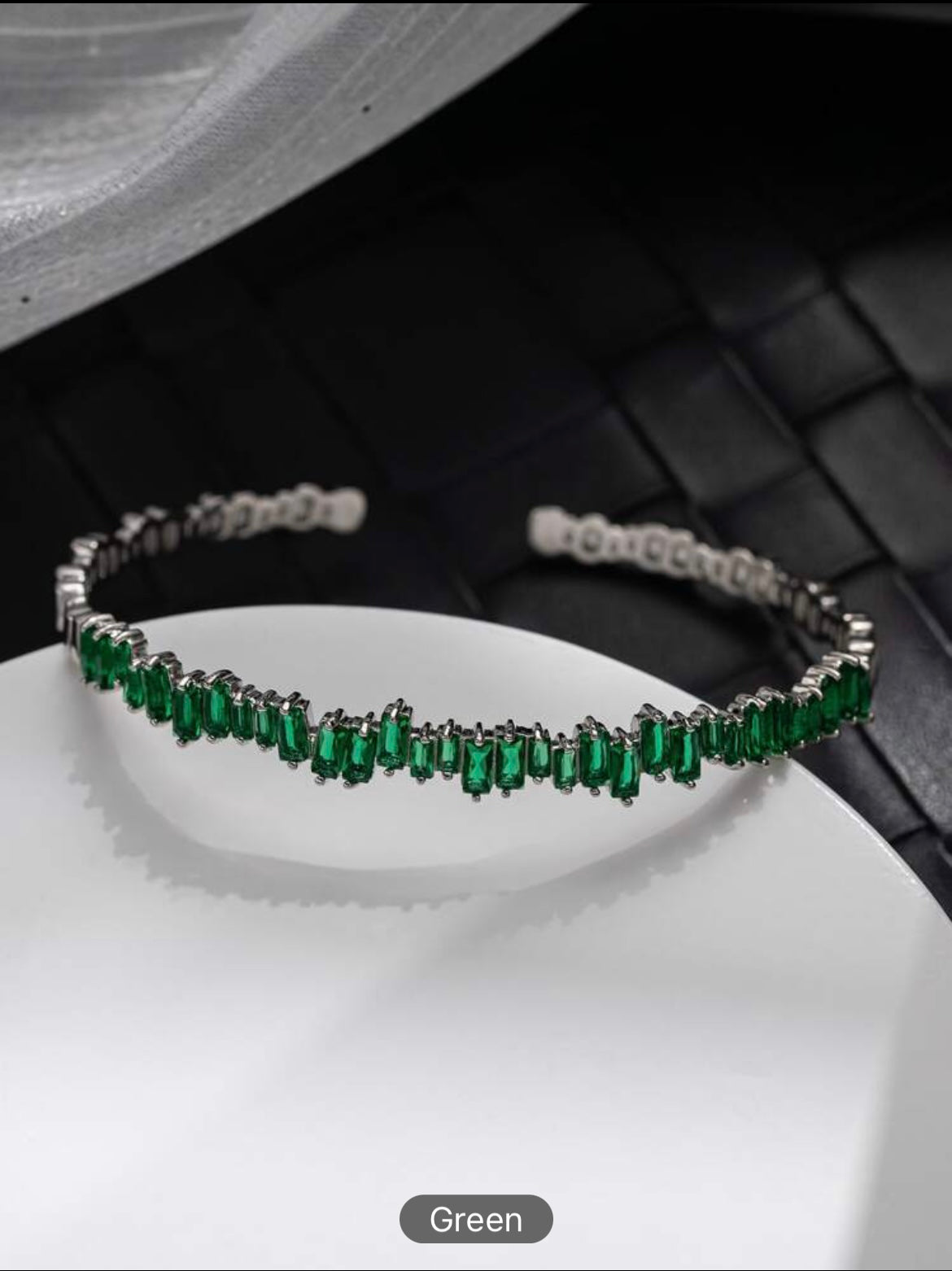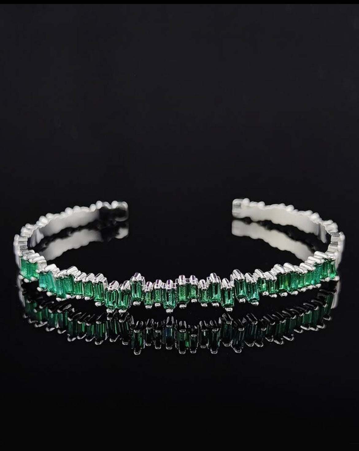 A stunning bracelet showcasing rectangular blue gemstones in a continuous silver band-elegant and timeless sparkle.