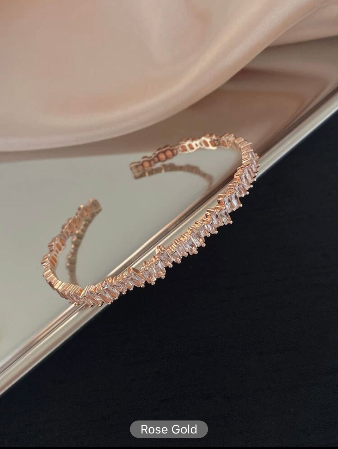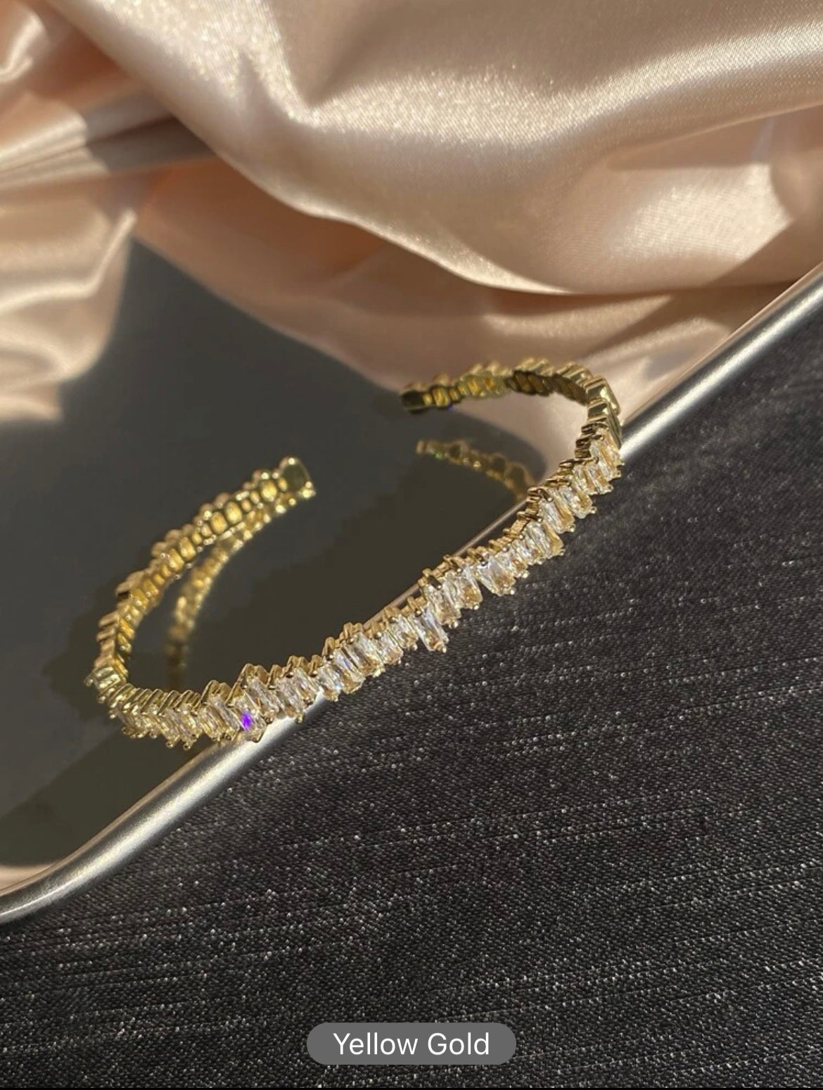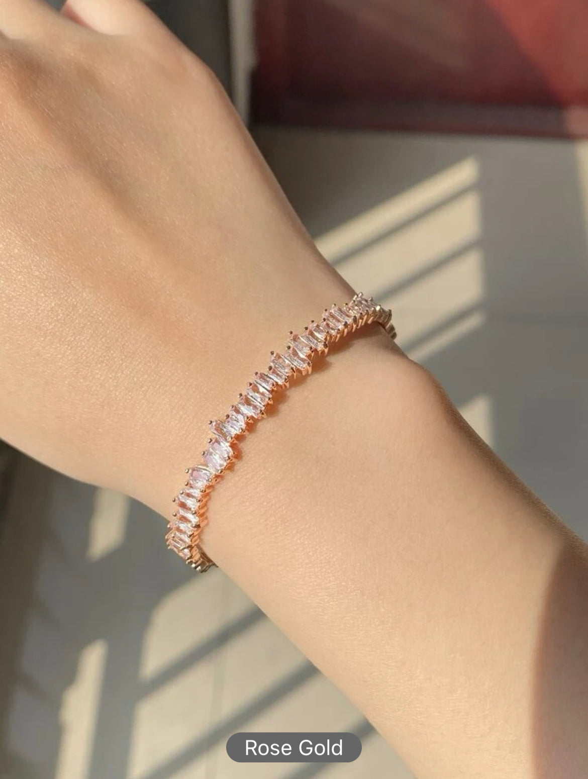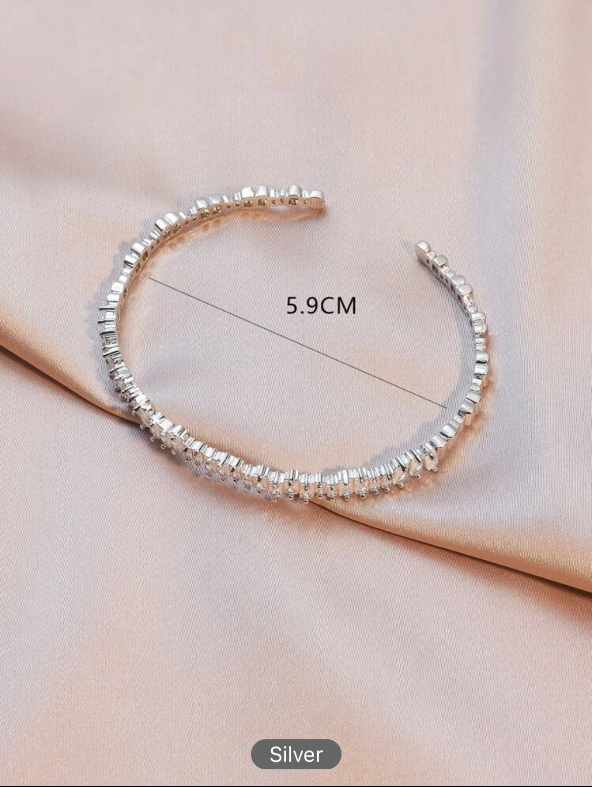 A stunning bracelet showcasing rectangular blue gemstones in a continuous silver band-elegant and timeless sparkle.