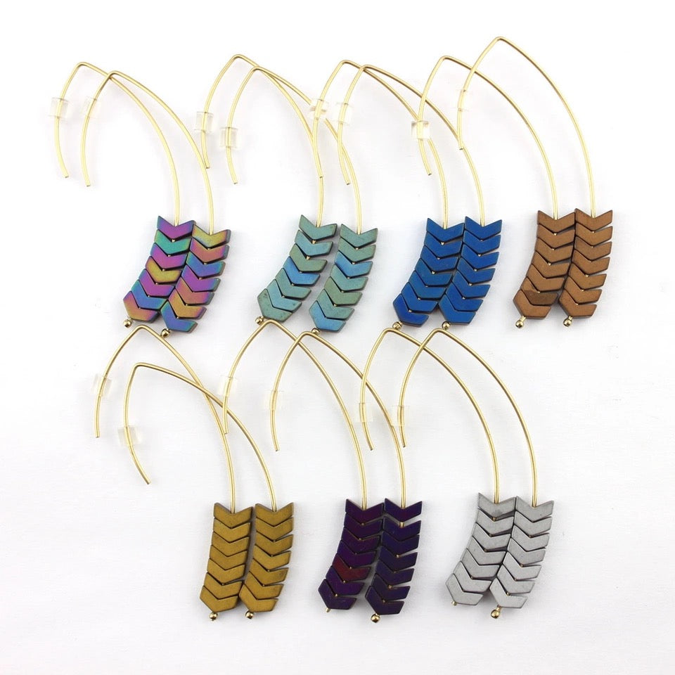 These earrings features a silver wire hook with flat natural element to it. Very Light and colorful.