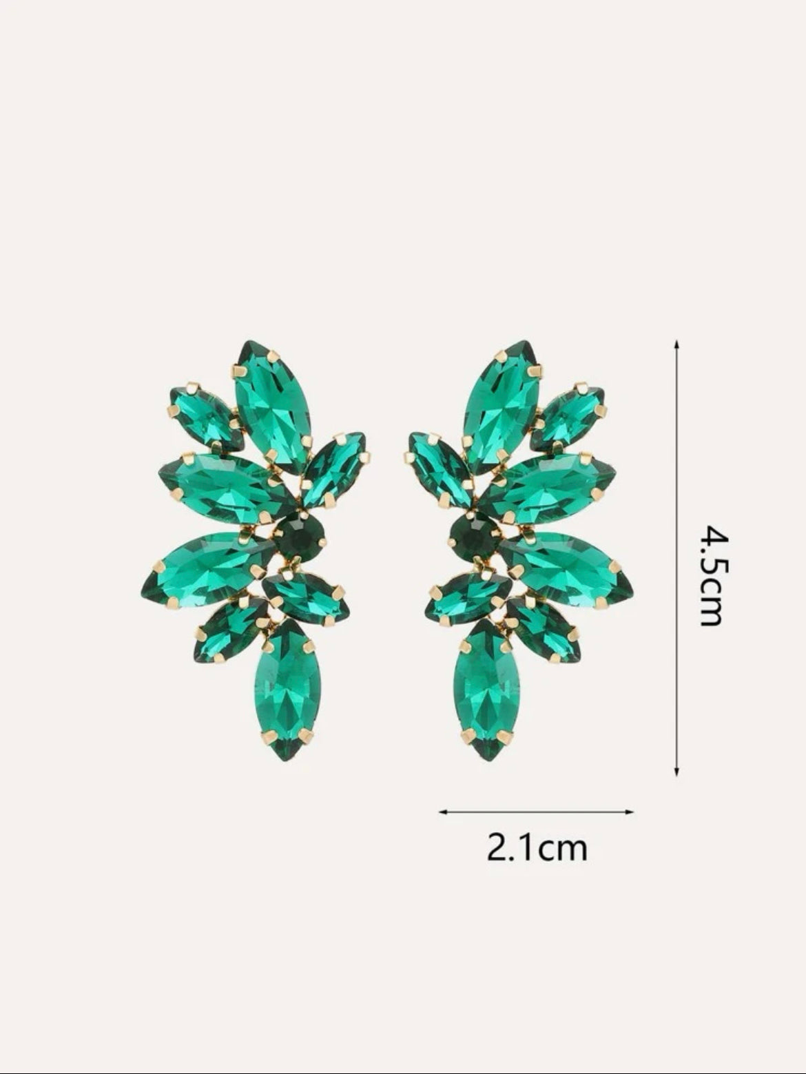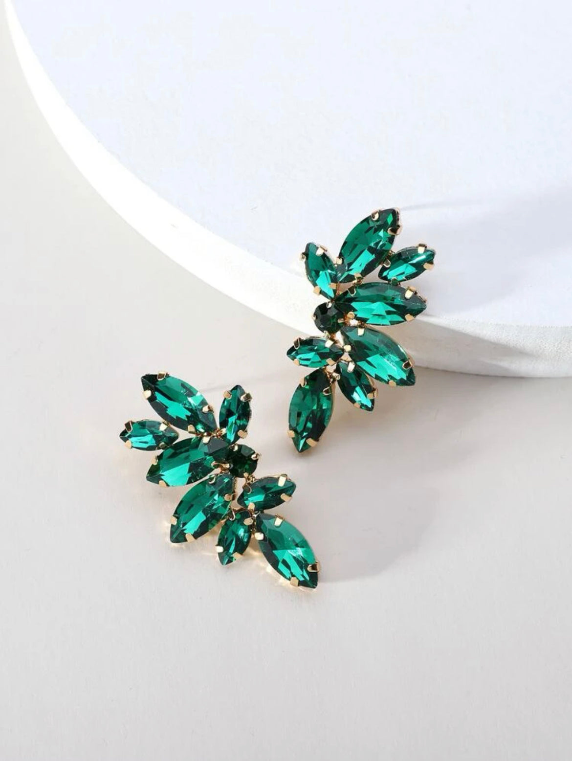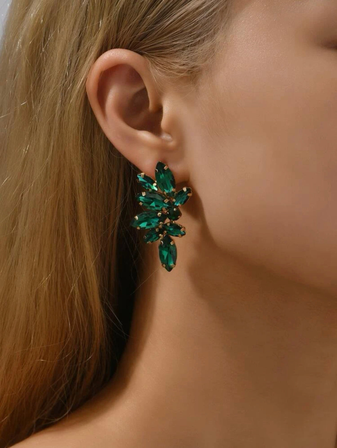 A dazzling earring with vibrant green gemstones arranged in a marquise-cut floral design, set in gleaming gold-captivating and refined.