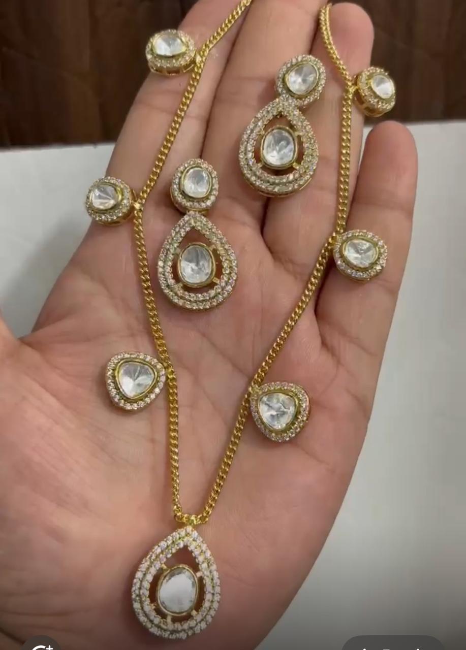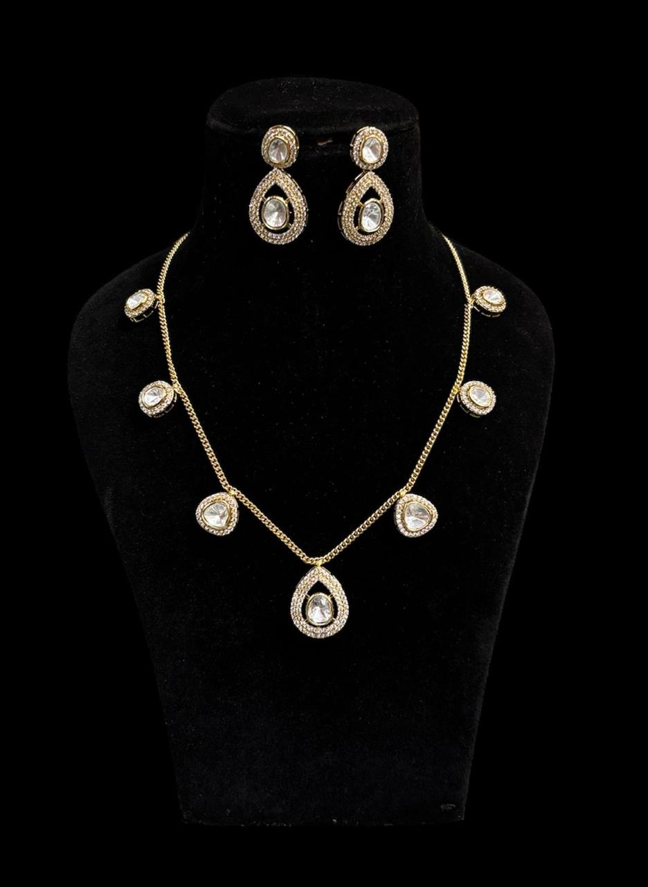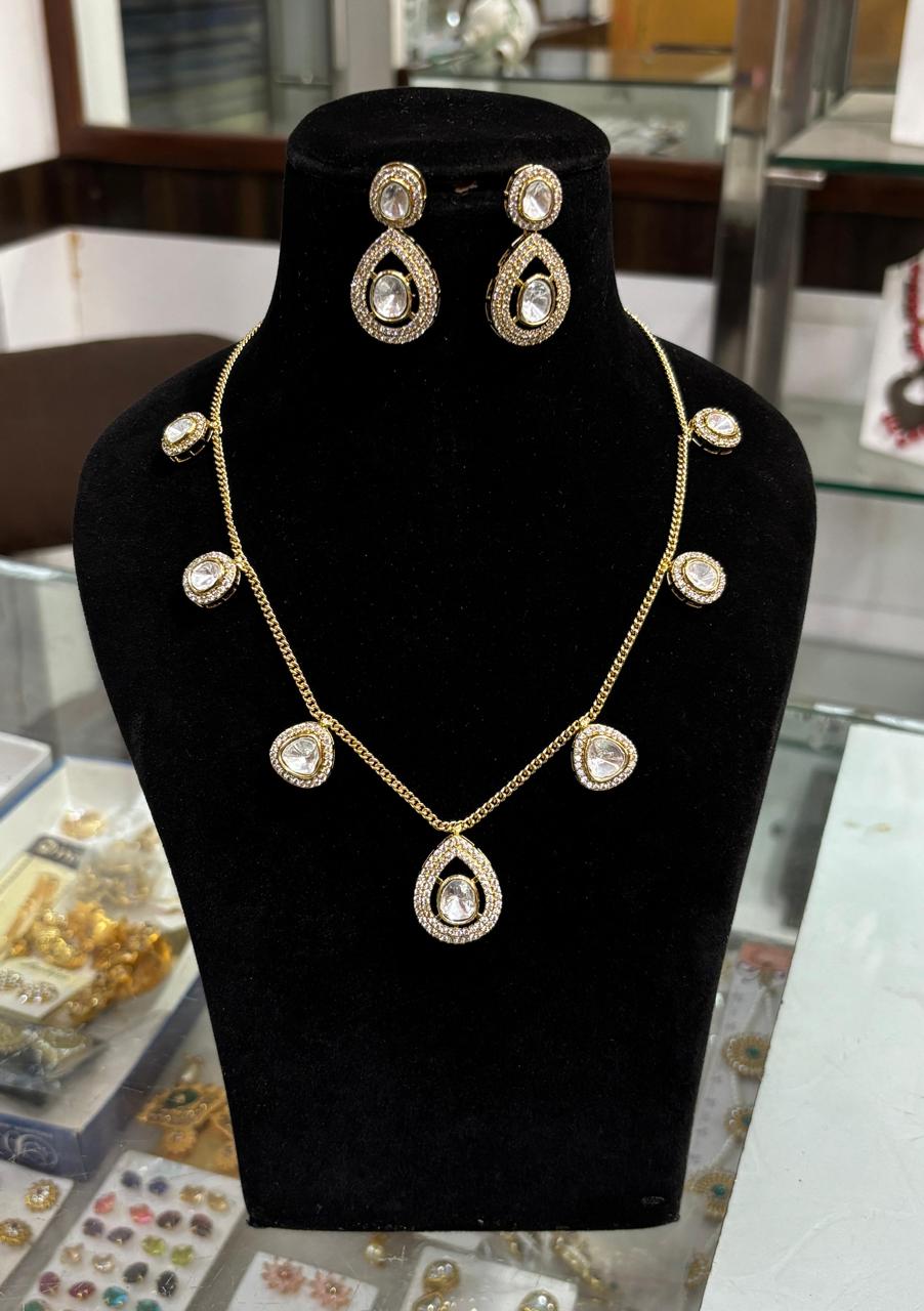 Elegant necklace and earrings with teardrop pendants, luminous gemstones, and delicate accents-elegant and refined.
