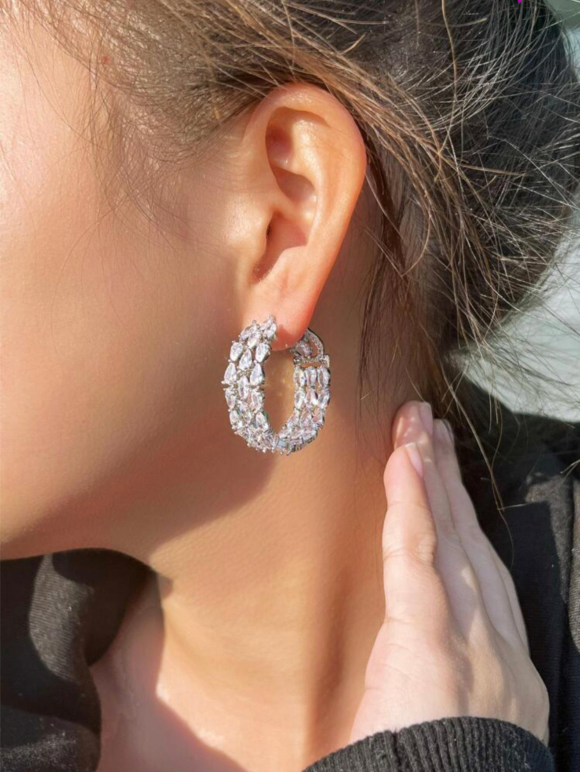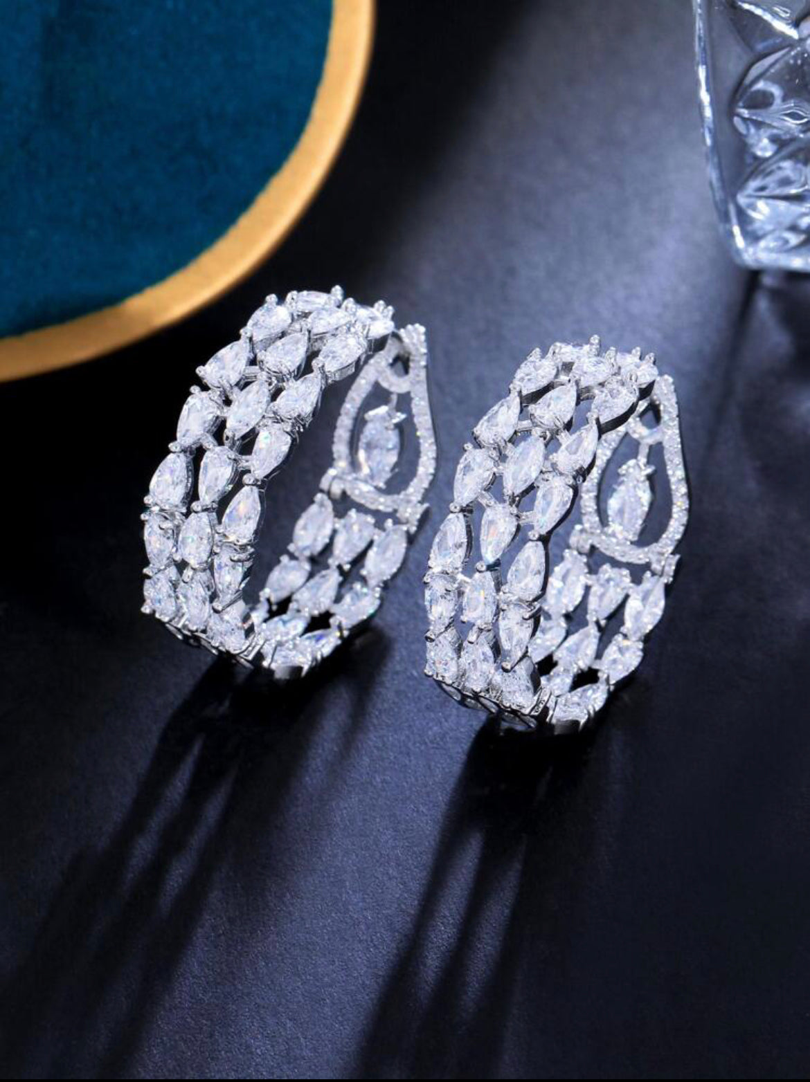 A grand display of classic over-sized earrings stunningly laced with sparkling CZ stones.