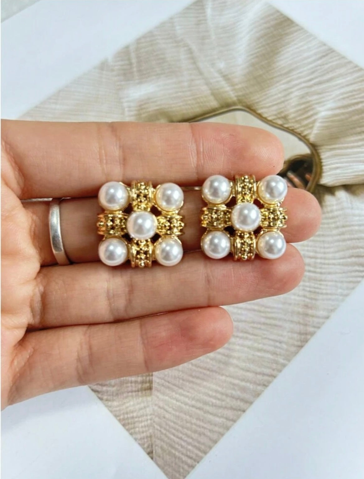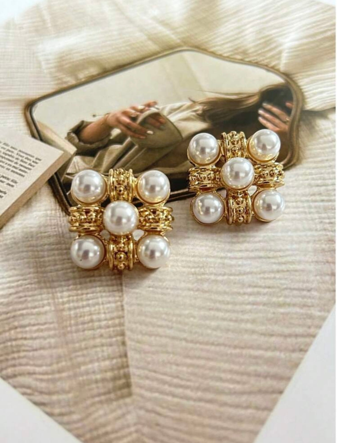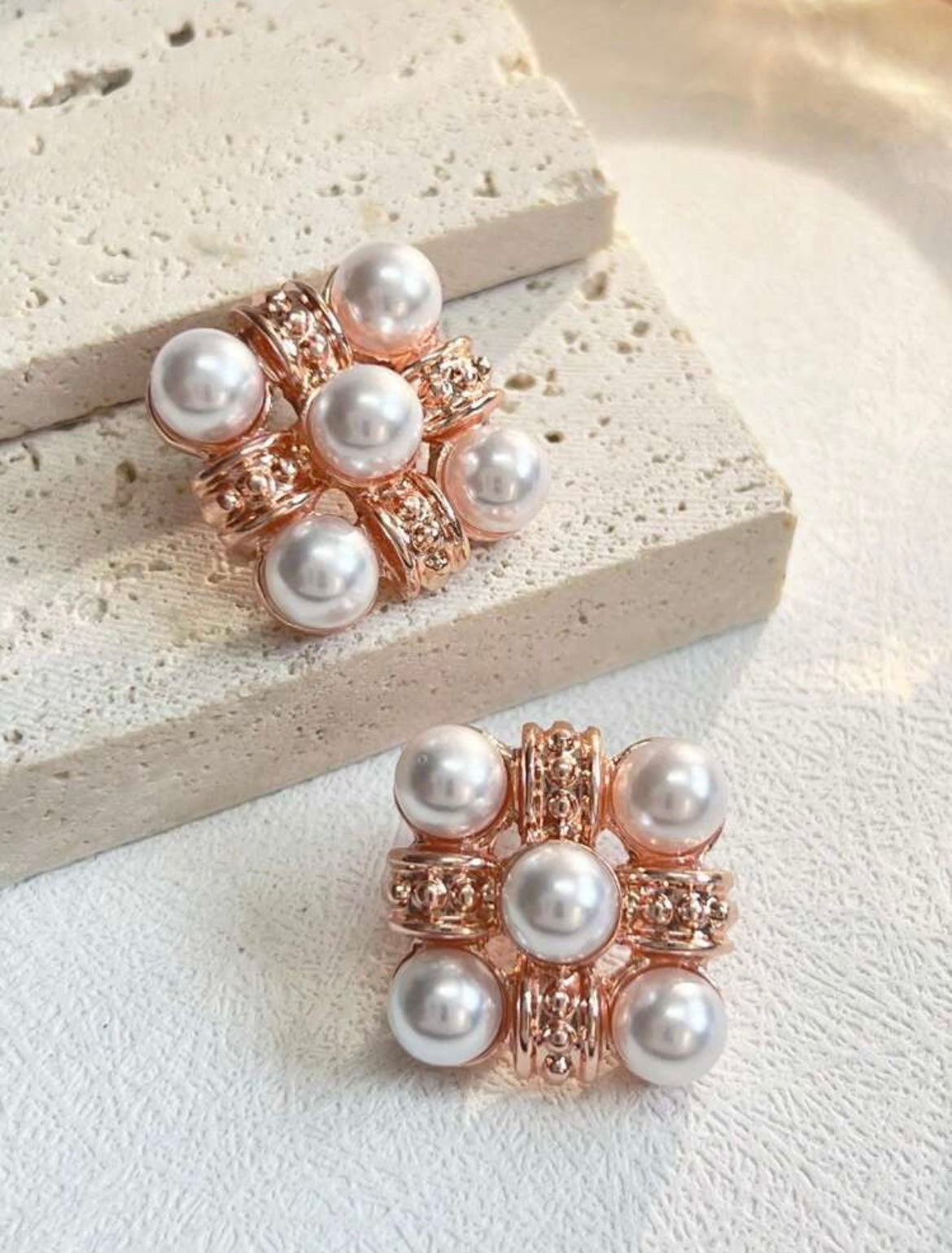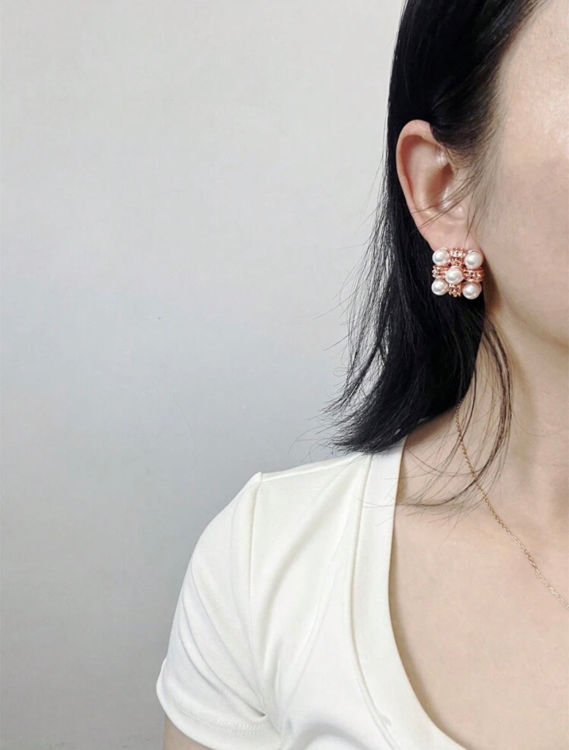 Delicate yet striking, these handcrafted pearl cluster studs blend timeless charm with modern artistry. Featuring six luminous faux pearls arranged in a floral-inspired pattern, they're beautifully wrapped in intricate rose gold wire, adding a subtle shimmer and a touch of sophistication.