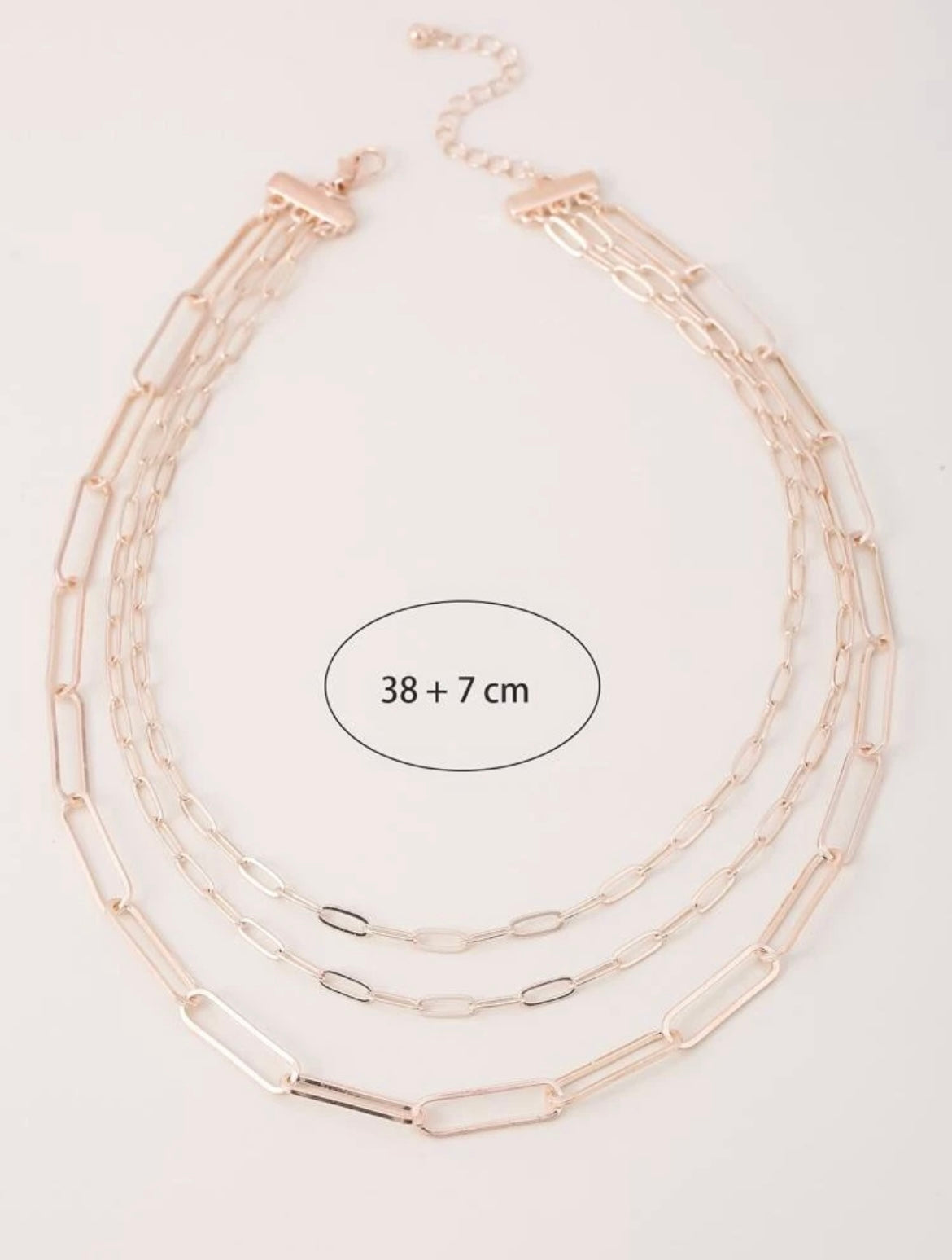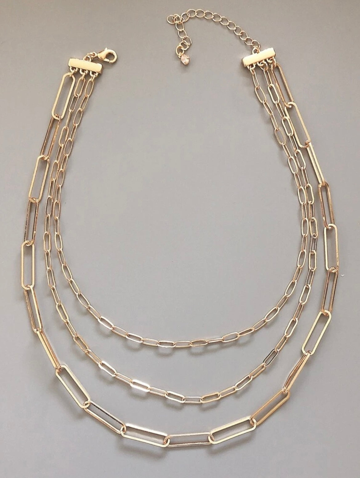 The necklace is a triple-layered paperclip chain necklace, it has a simple clasp closure, trendy design.