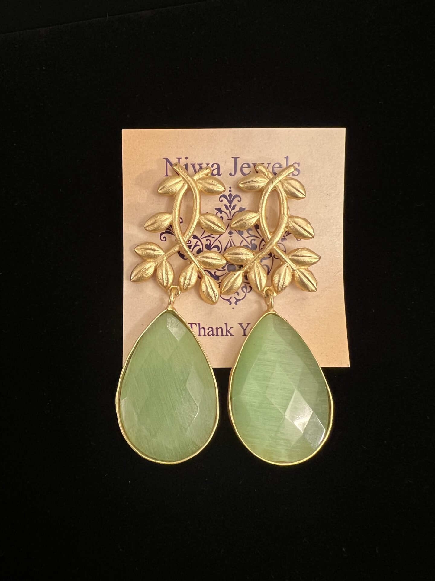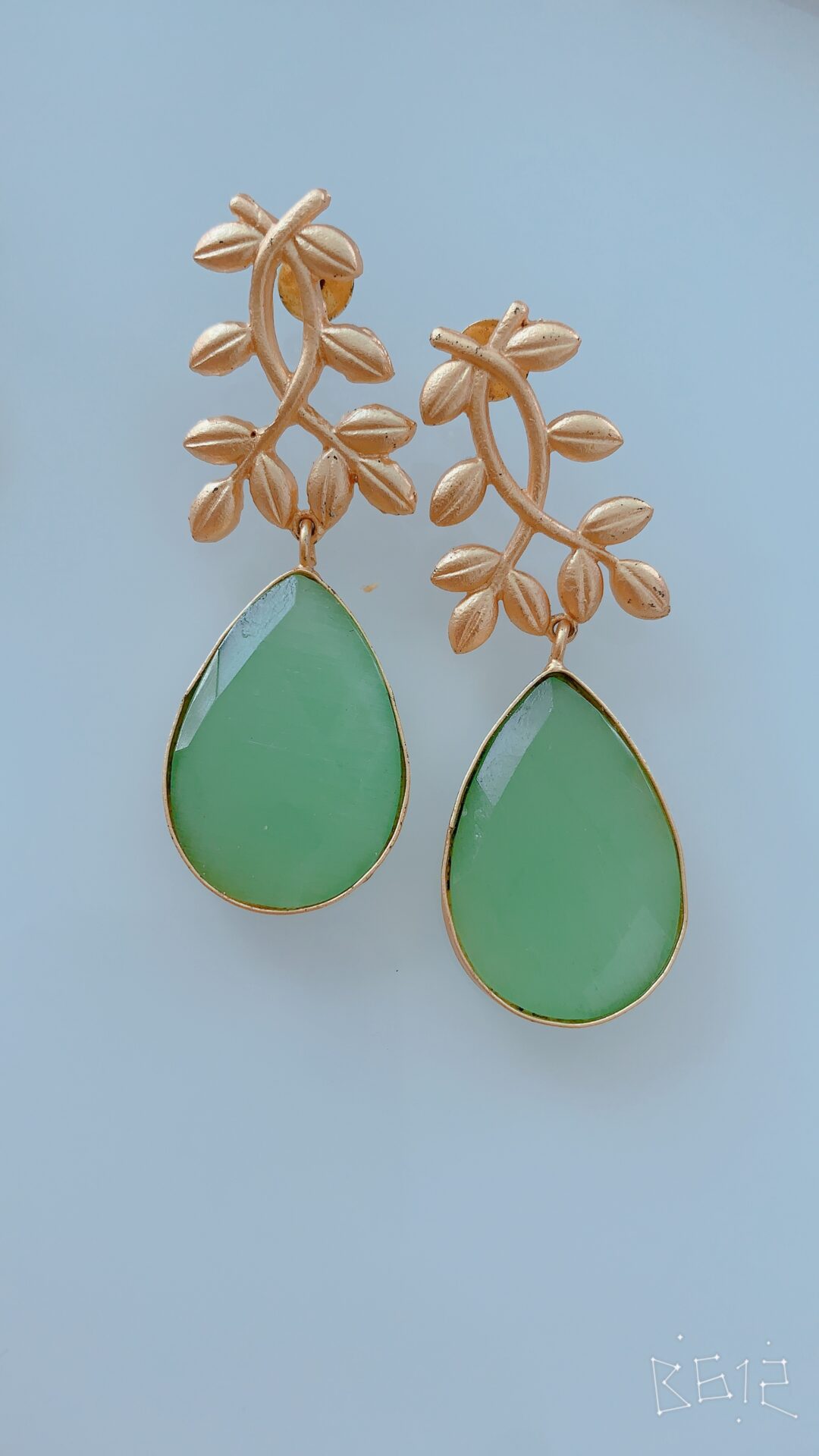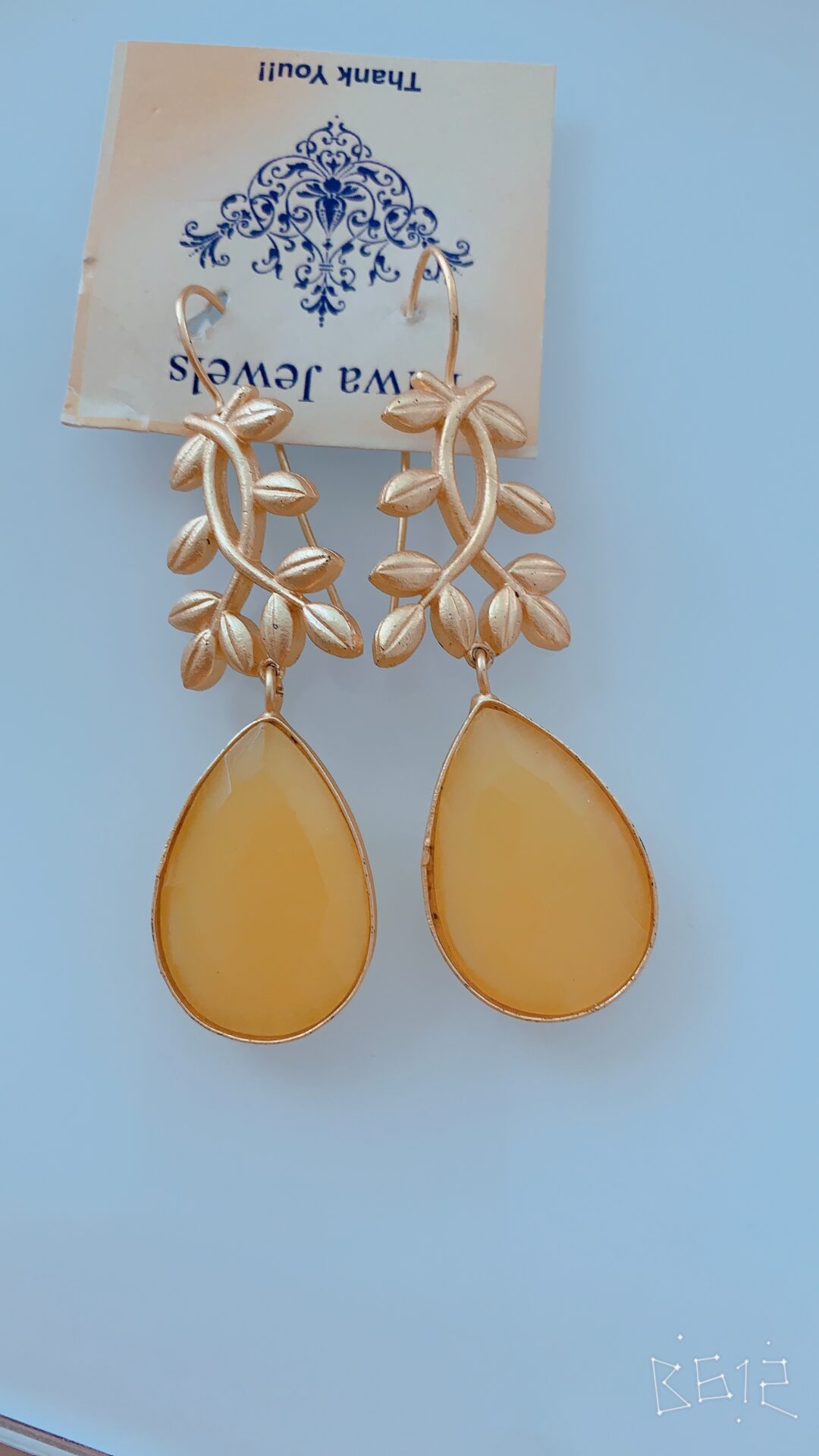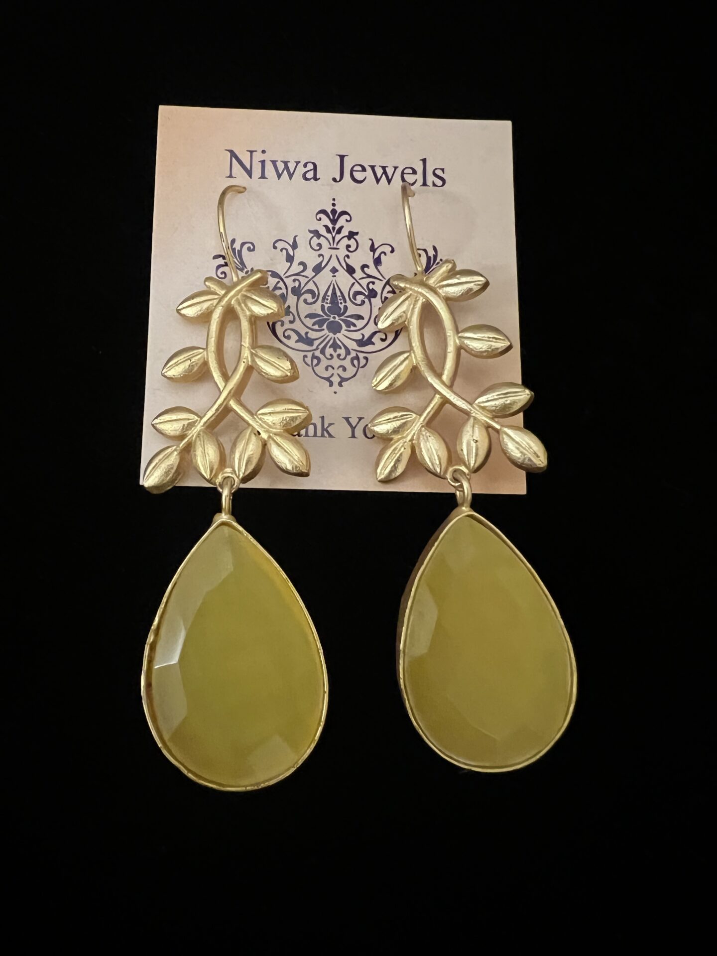 Exquisite gold-tone earrings with delicate branch-like designs, adorned with vibrant yellow teardrop gemstones for a touch of elegance.