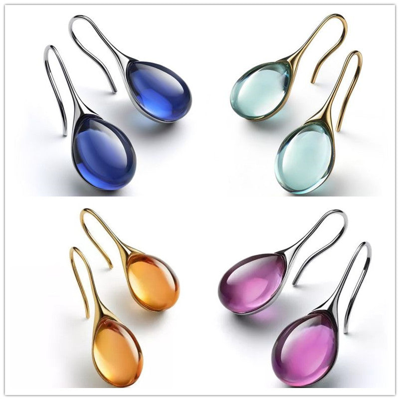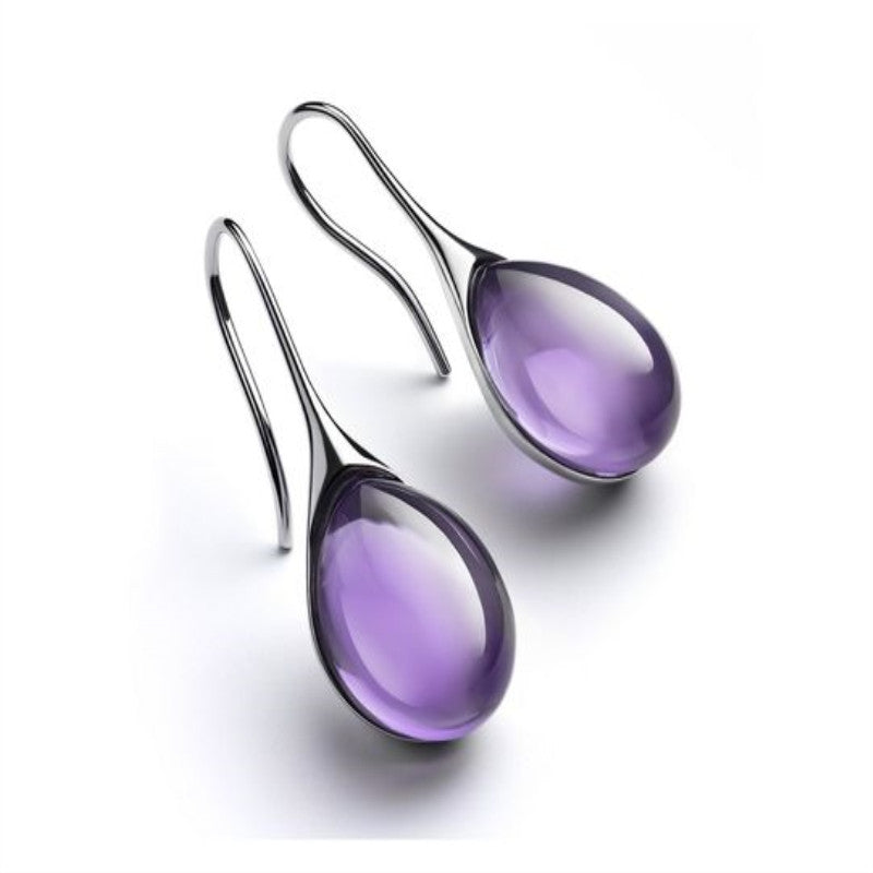 Combining a delicate glint of gold with drop glass in a sleek finish, this feminine pair adds instant charm to everything already in your wardrobe. Available in red, purple and blue.
