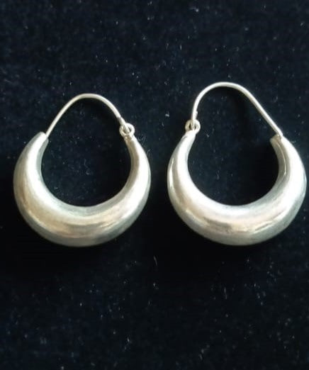 Sleek silver crescent hoop earrings with a polished surface-minimalist and versatile.
