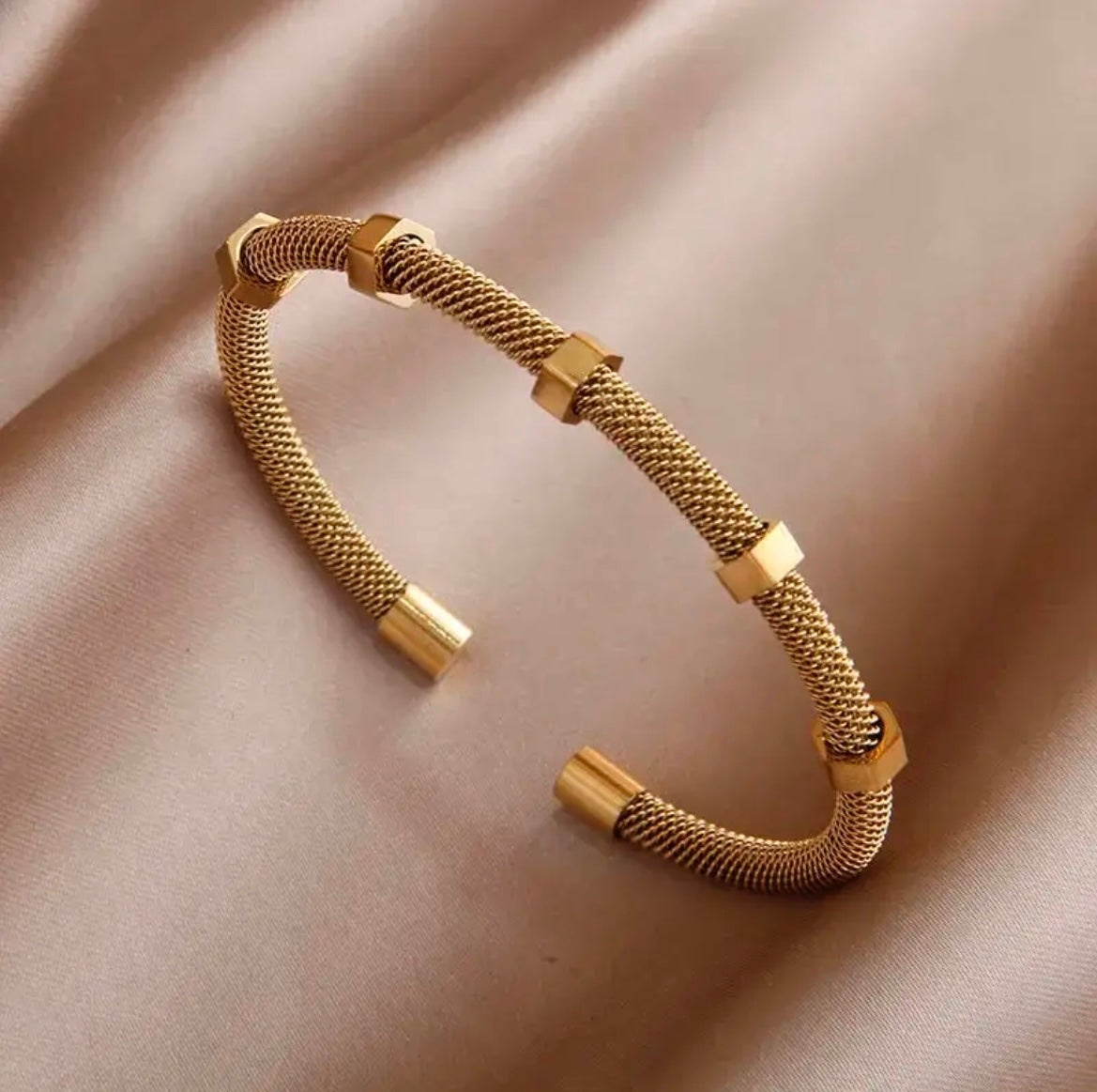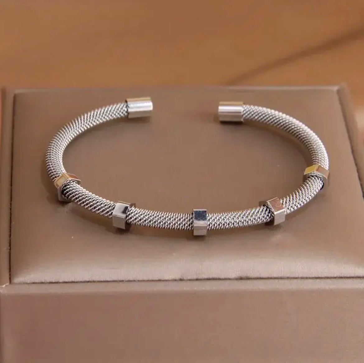 The bracelet is designed as an open cuff bangle, without a clasp , suitable for gift or for parties.