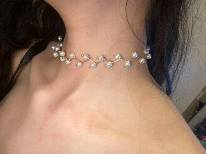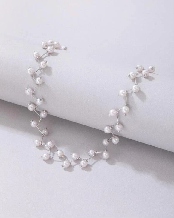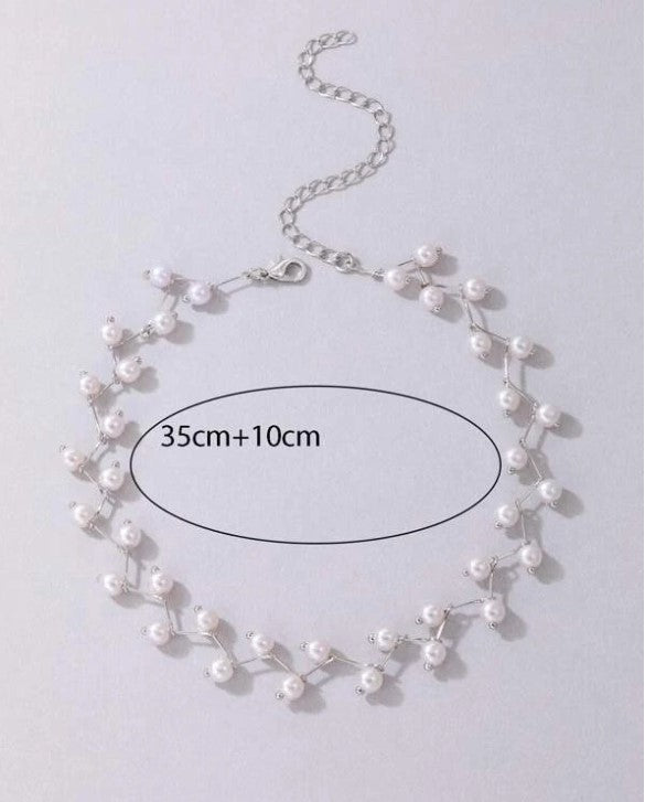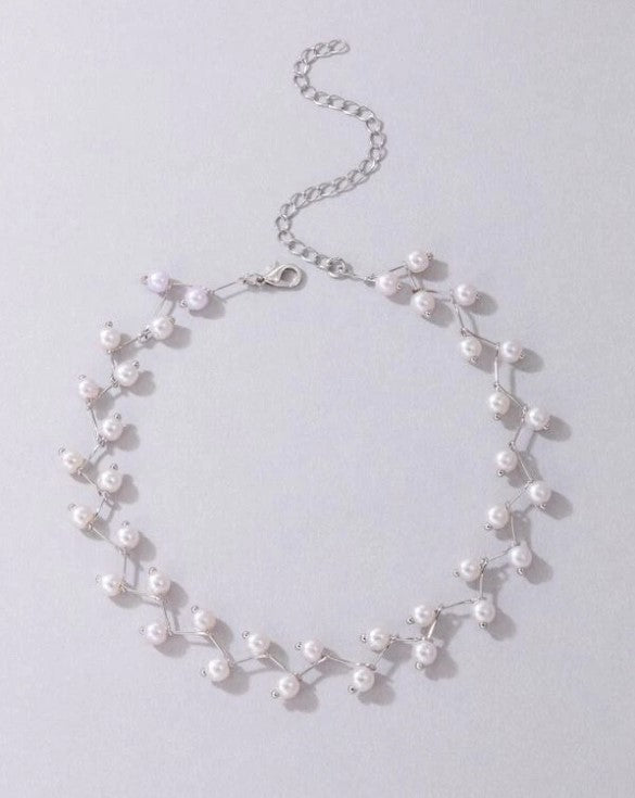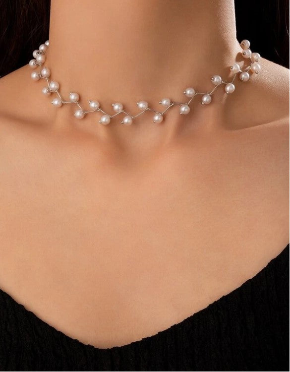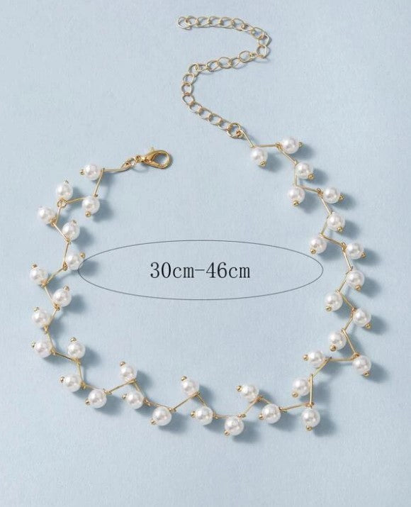 This is a choker style necklace, featuring a zigzag design with small pearls and giving it elegant look.