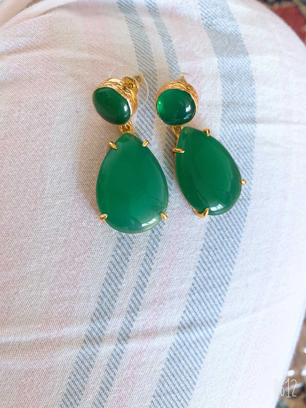 Refined gold earrings with vibrant green gemstones, featuring a teardrop design that exudes elegance and timeless sophistication.