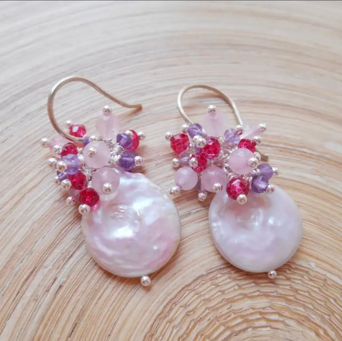 The earrings are drop style with a cluster design and suitable for adding a touch of elegance.