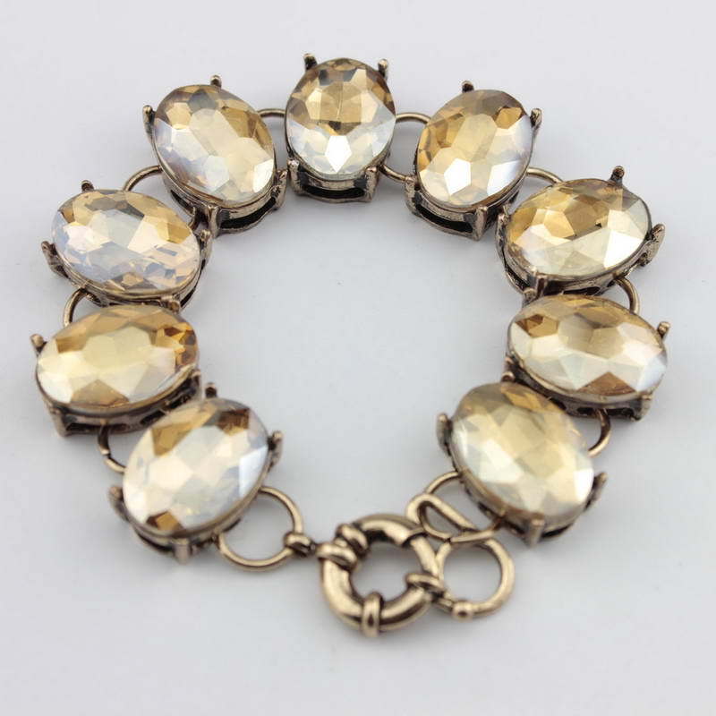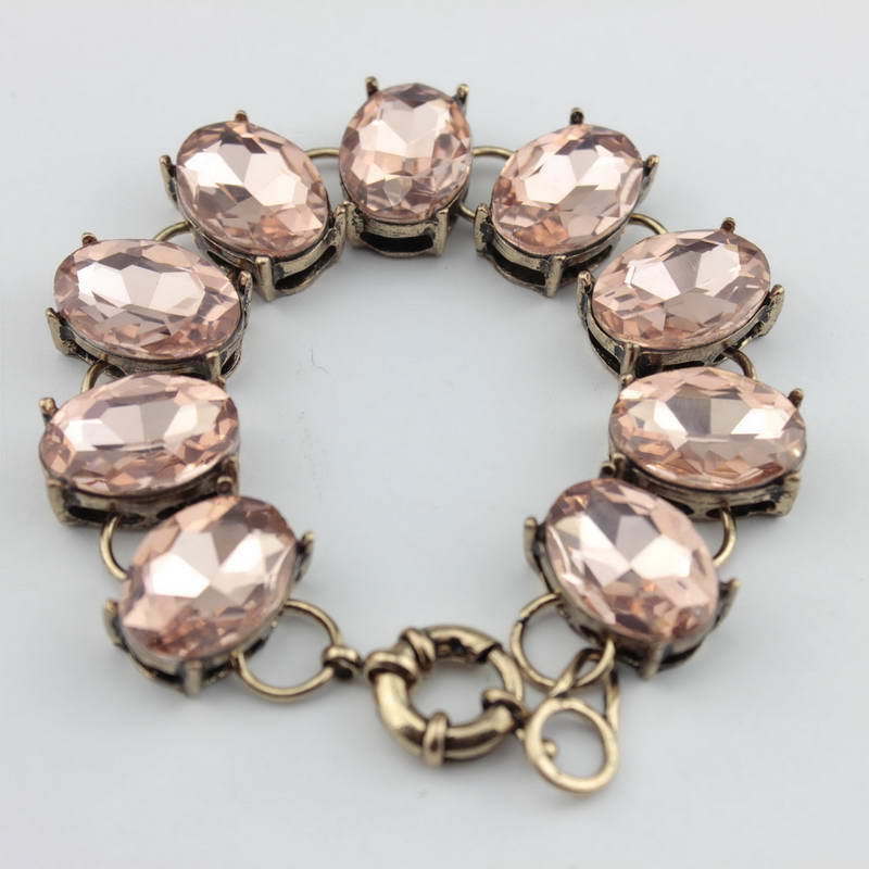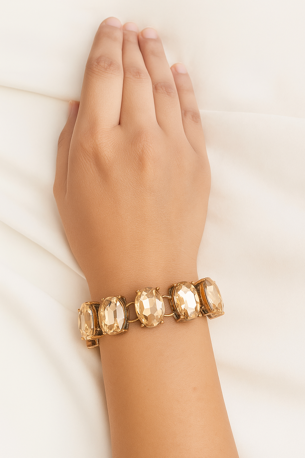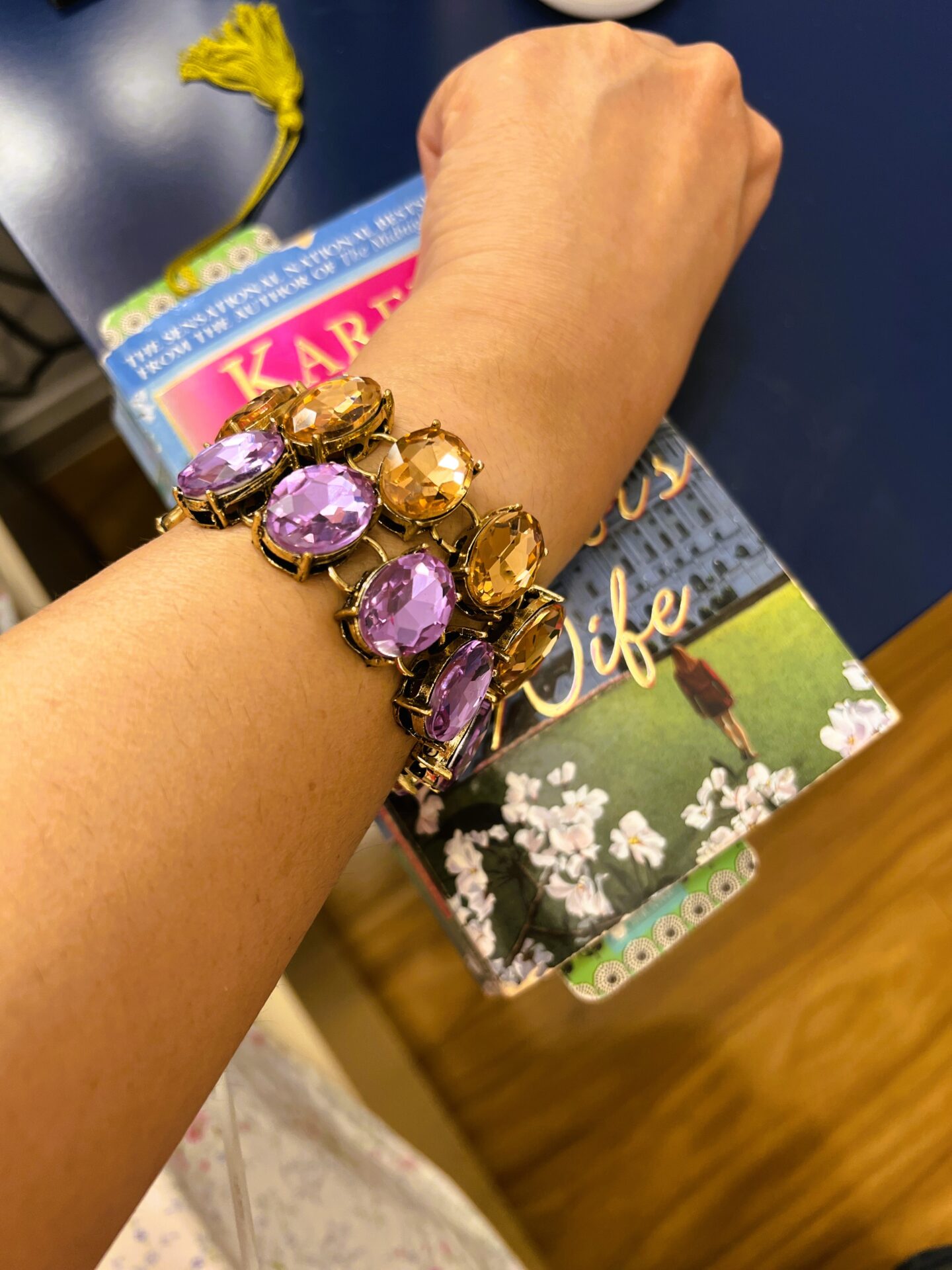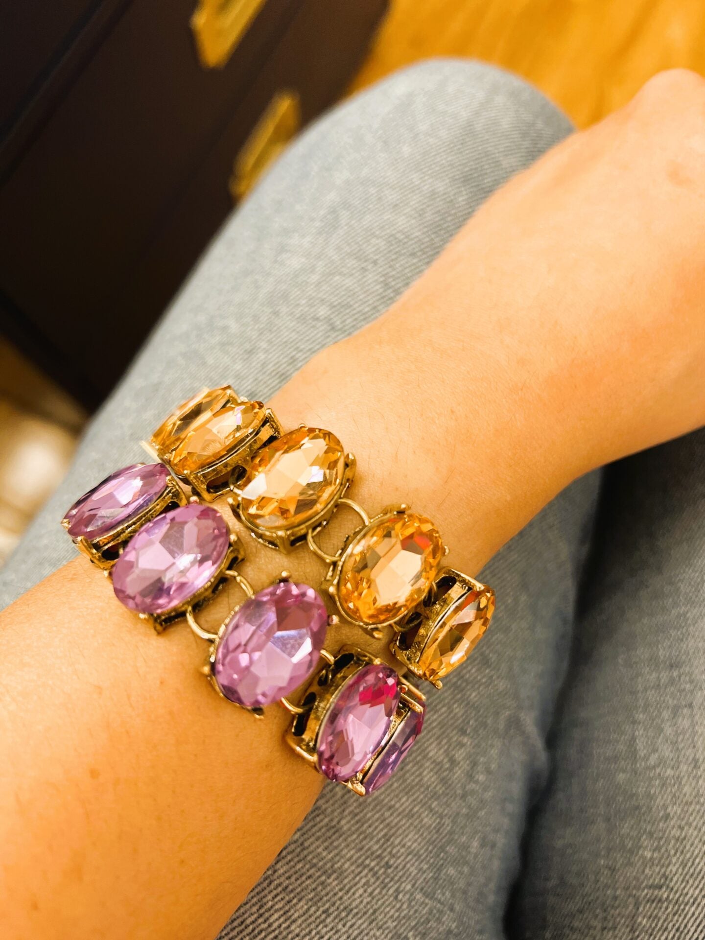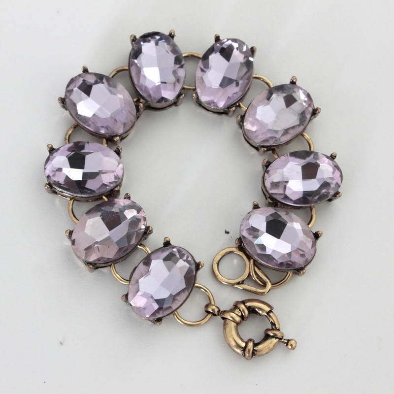 A delicate bracelet featuring oval light purple gemstones set in gold-tone links, radiating elegance and charm.