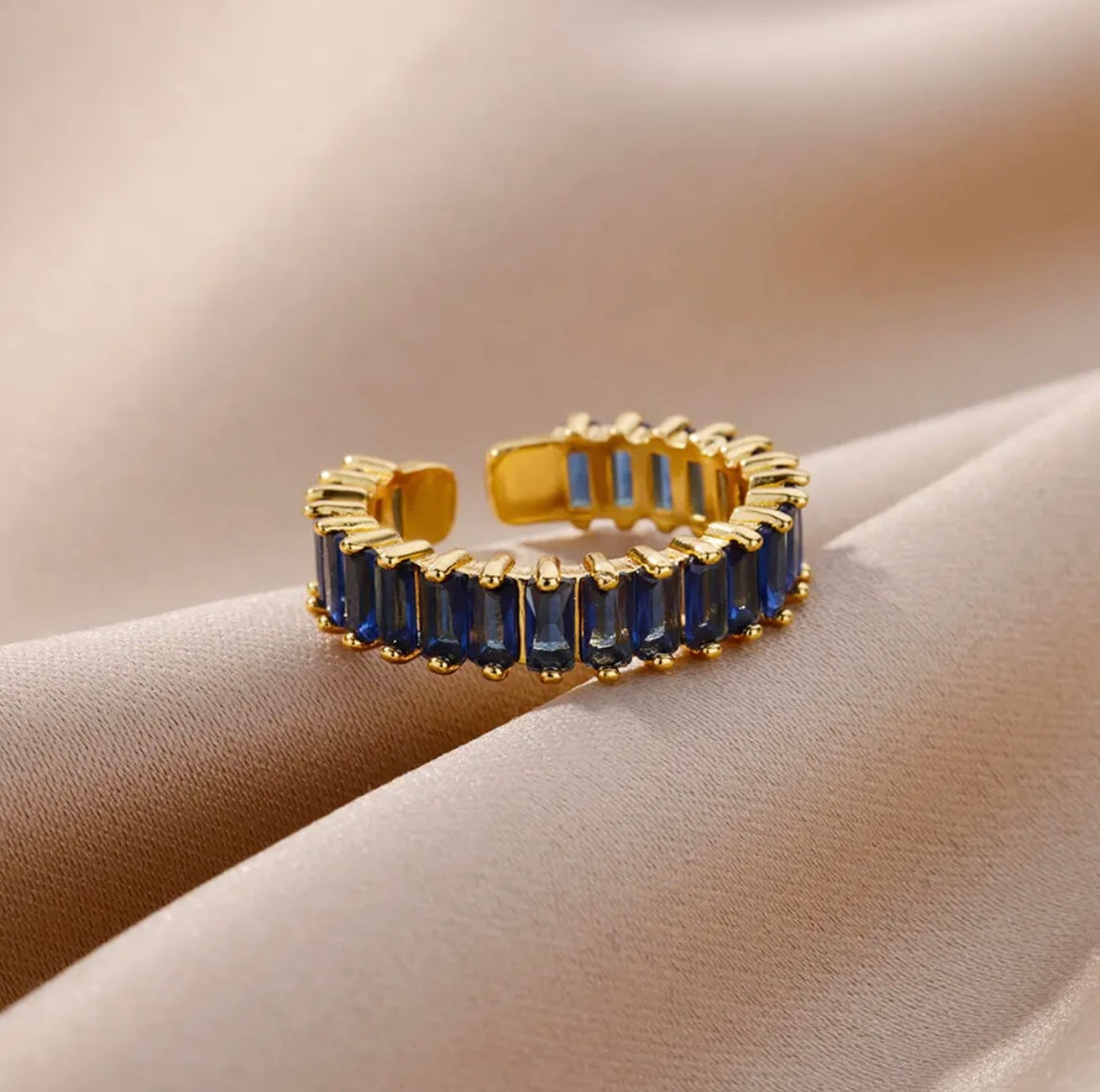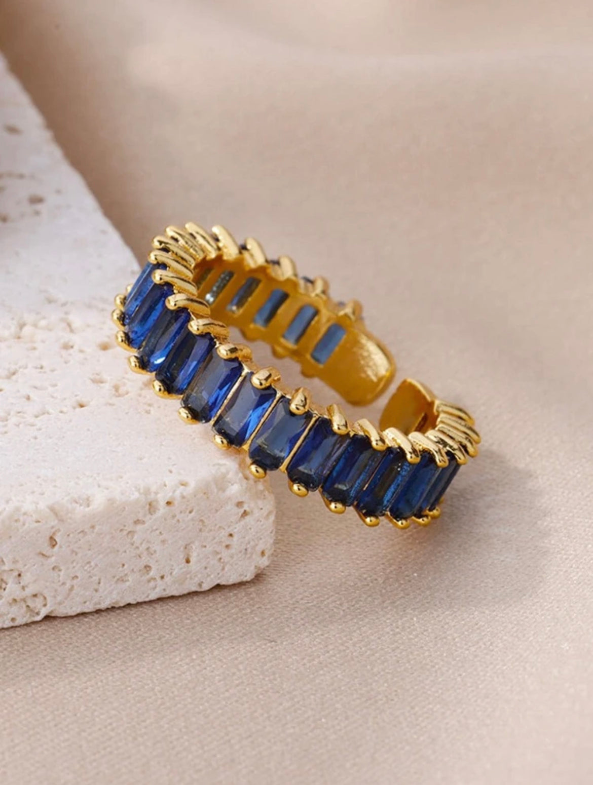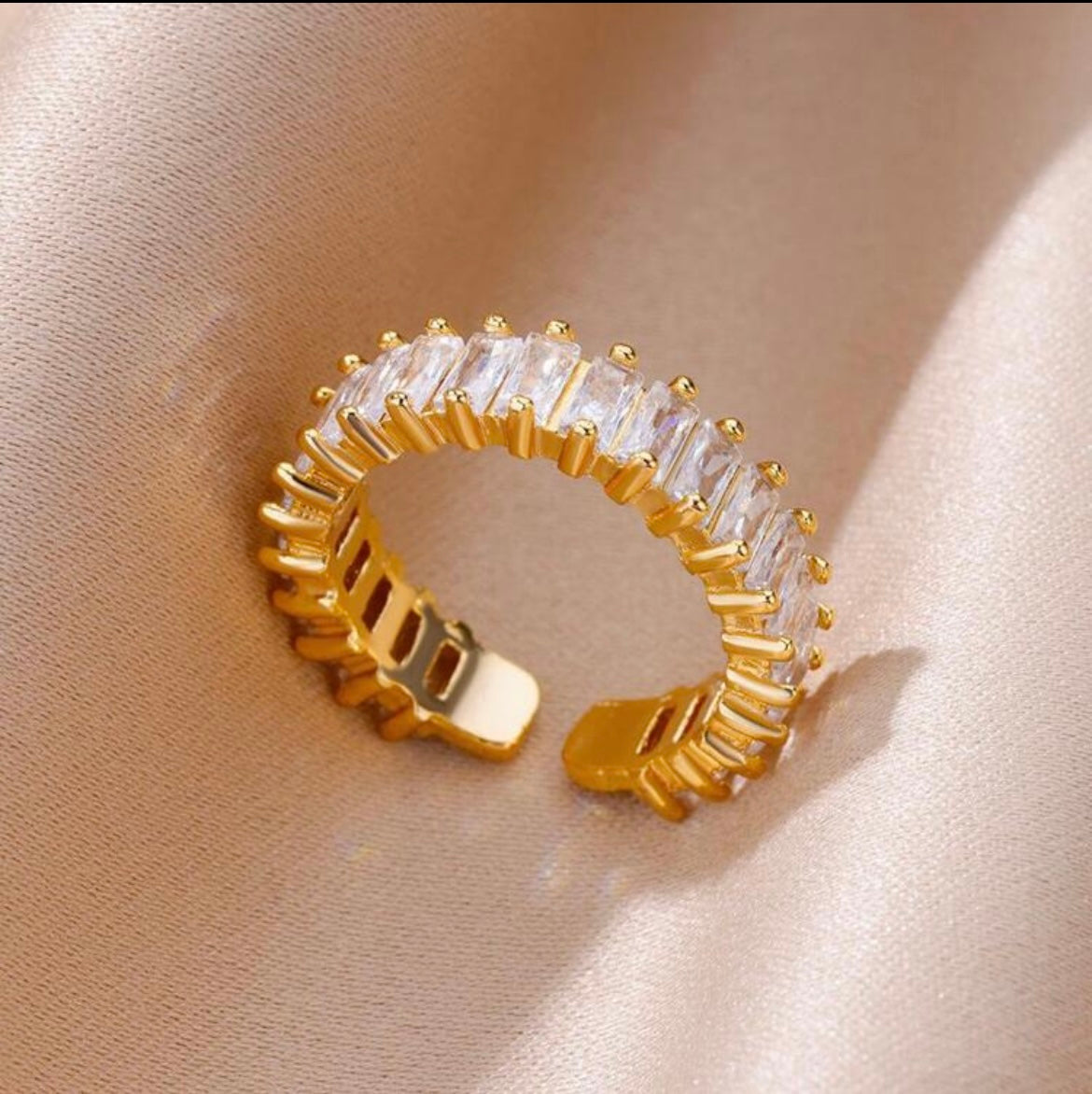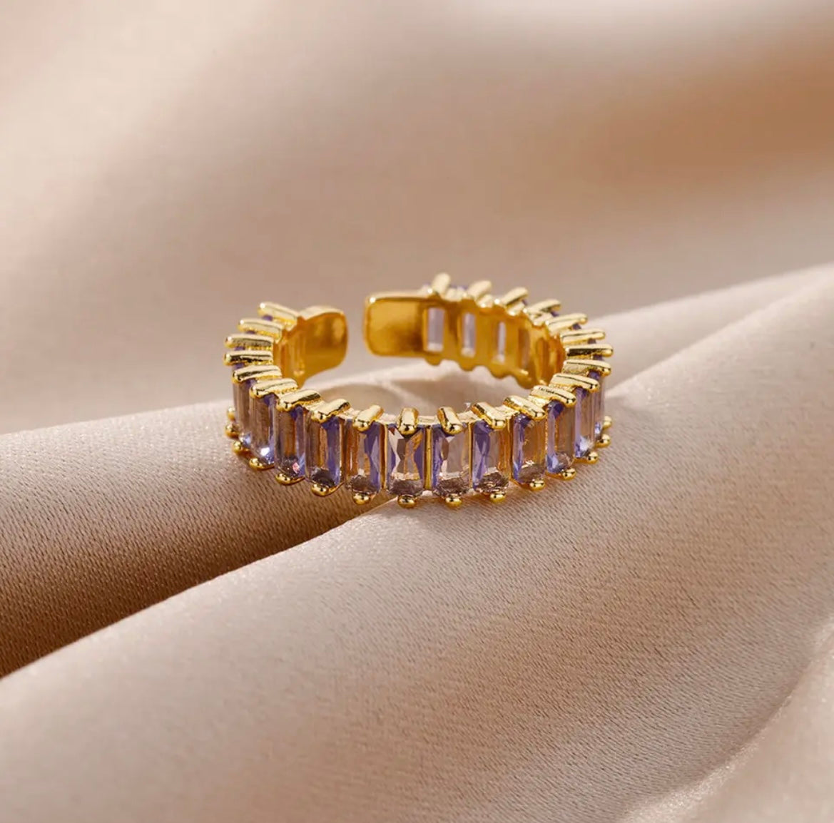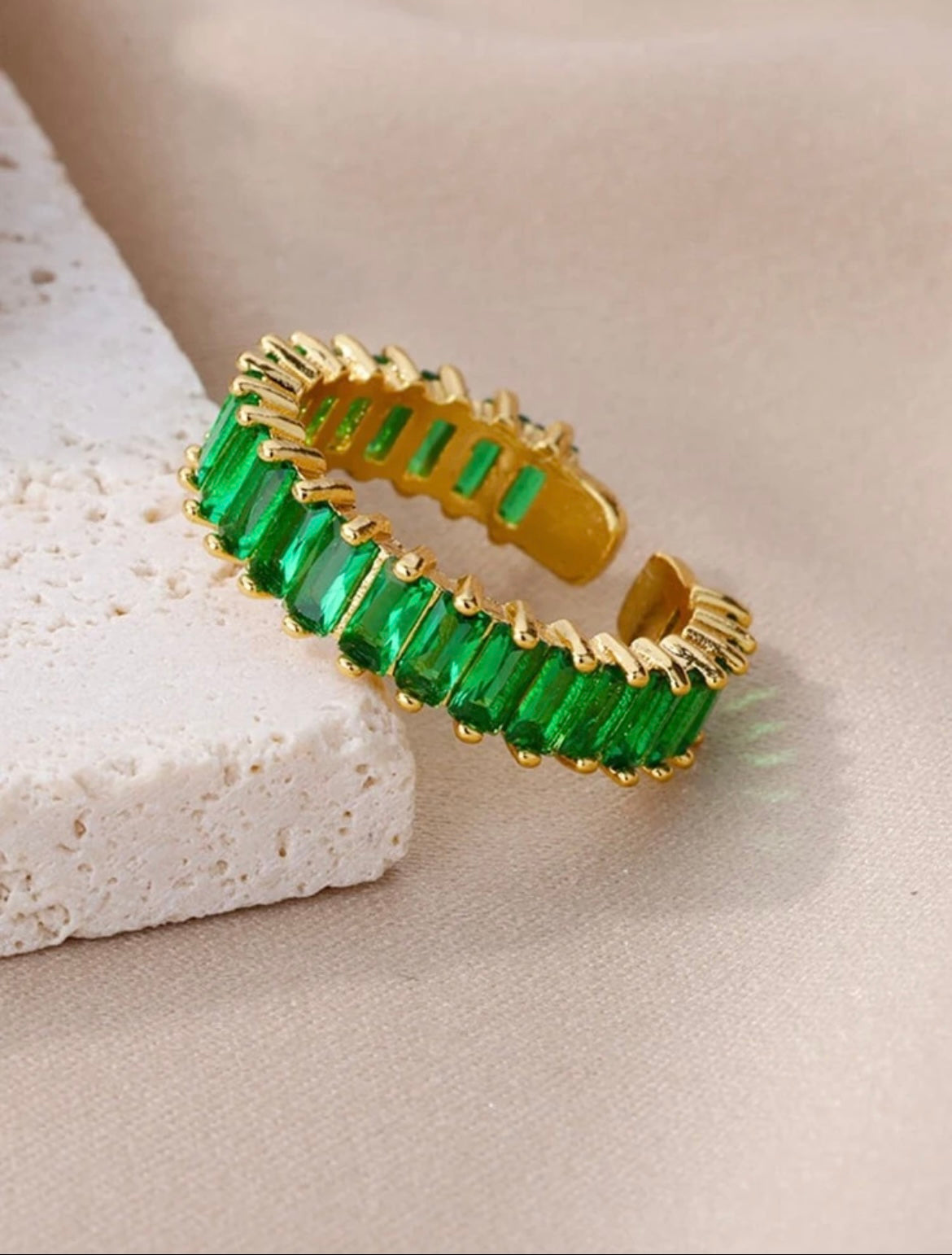 The ring is identified as a "Emerald Cut Diamond Ring" , an open style with baguette-cut white stone.