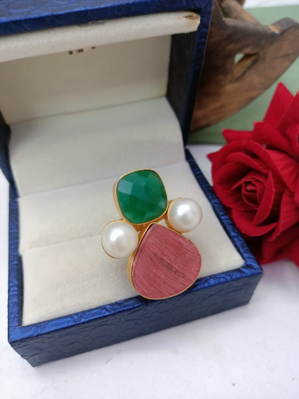 A modern day ring crafted with pearls & natural stones with elegance of fused gold for every statement occasion to celebrate you.