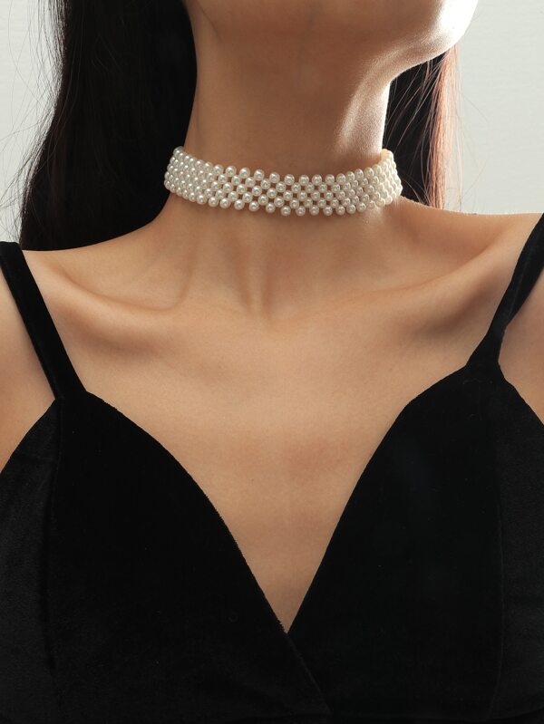 An apt pick for cocktail parties don this beaded beauty for a stellar look. Adorned with lustrous pearls in multi cris cross pattern. This layered choker displays stunning artistry. this choker is a beautiful amalgamation of elegance and charm.