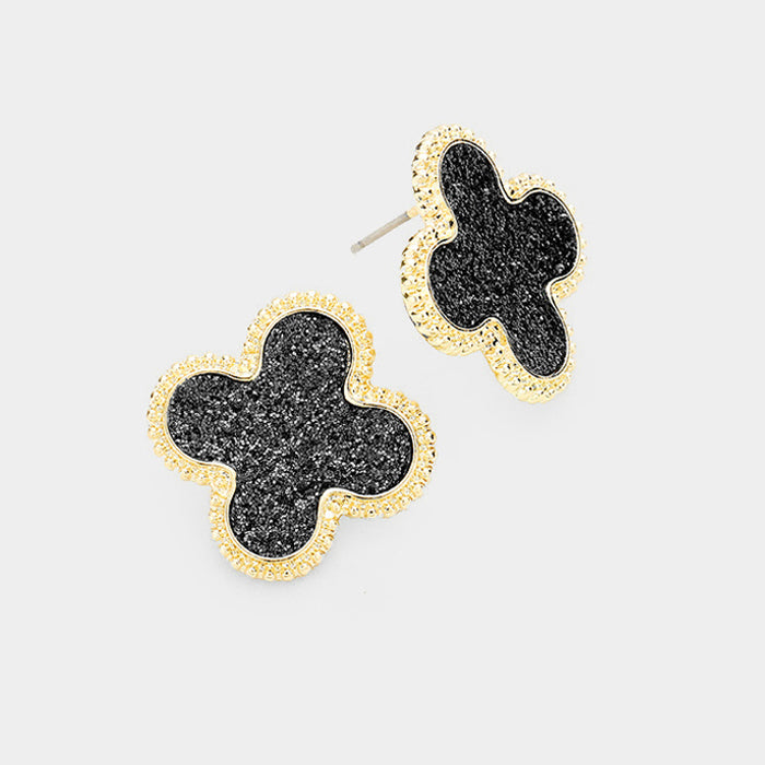 Striking stud earrings with glittering black centers framed by textured gold borders, embodying bold elegance and refinement.