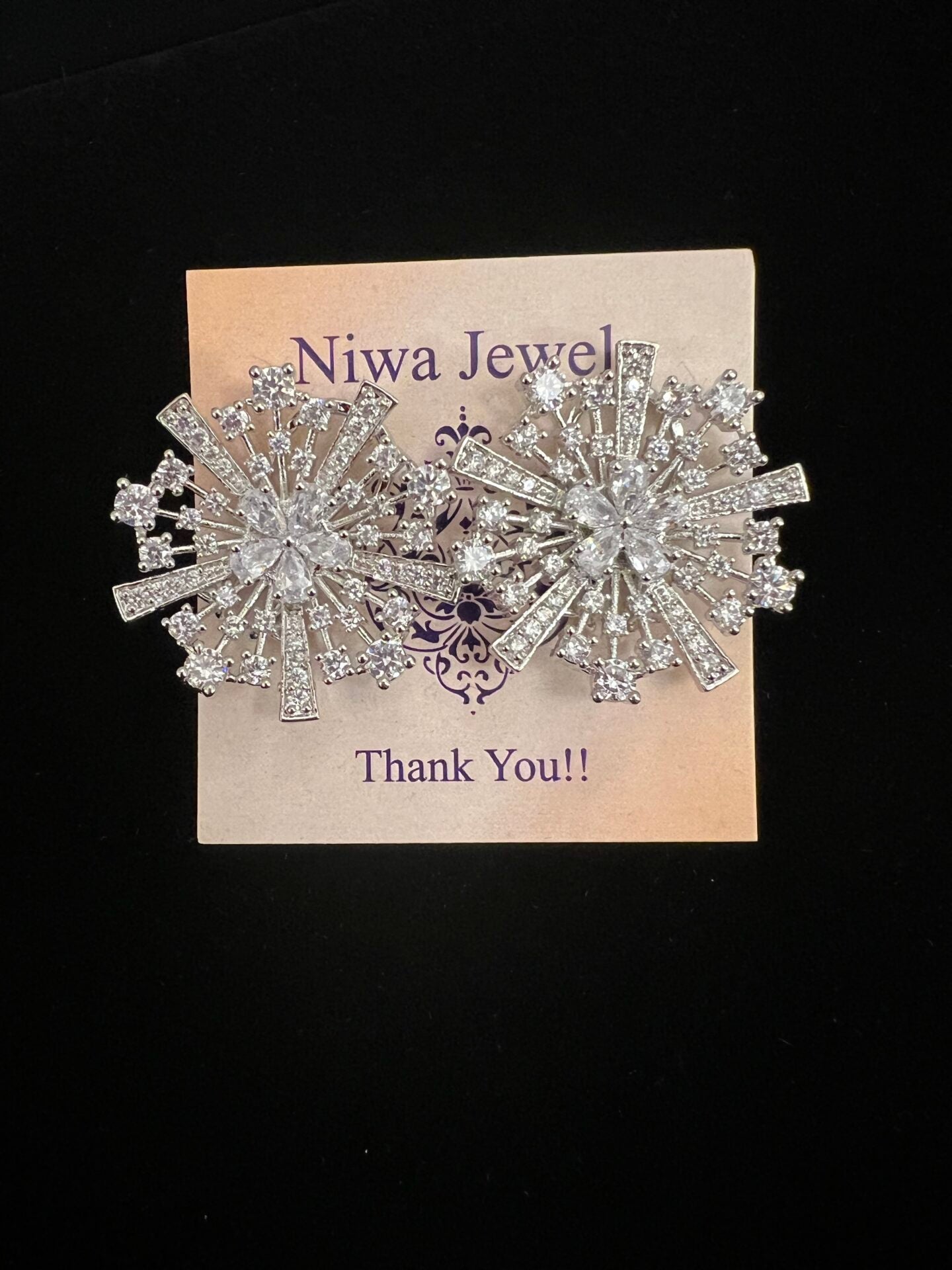 These radiant statement studs burst like a star with shimmering crystals, blending bold sparkle and graceful symmetry in a dazzling design.