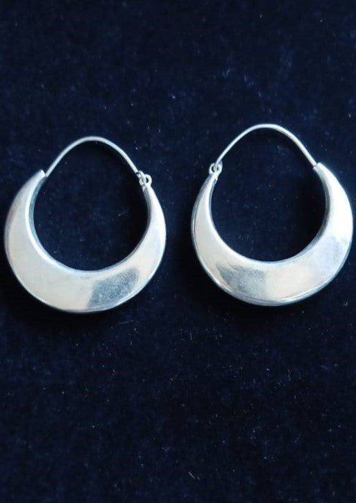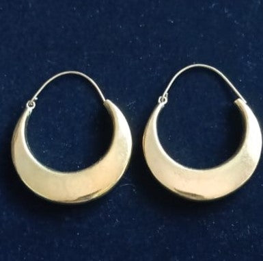 Polished gold crescent hoop earrings with a smooth, reflective finish, offering timeless simplicity and sophistication.