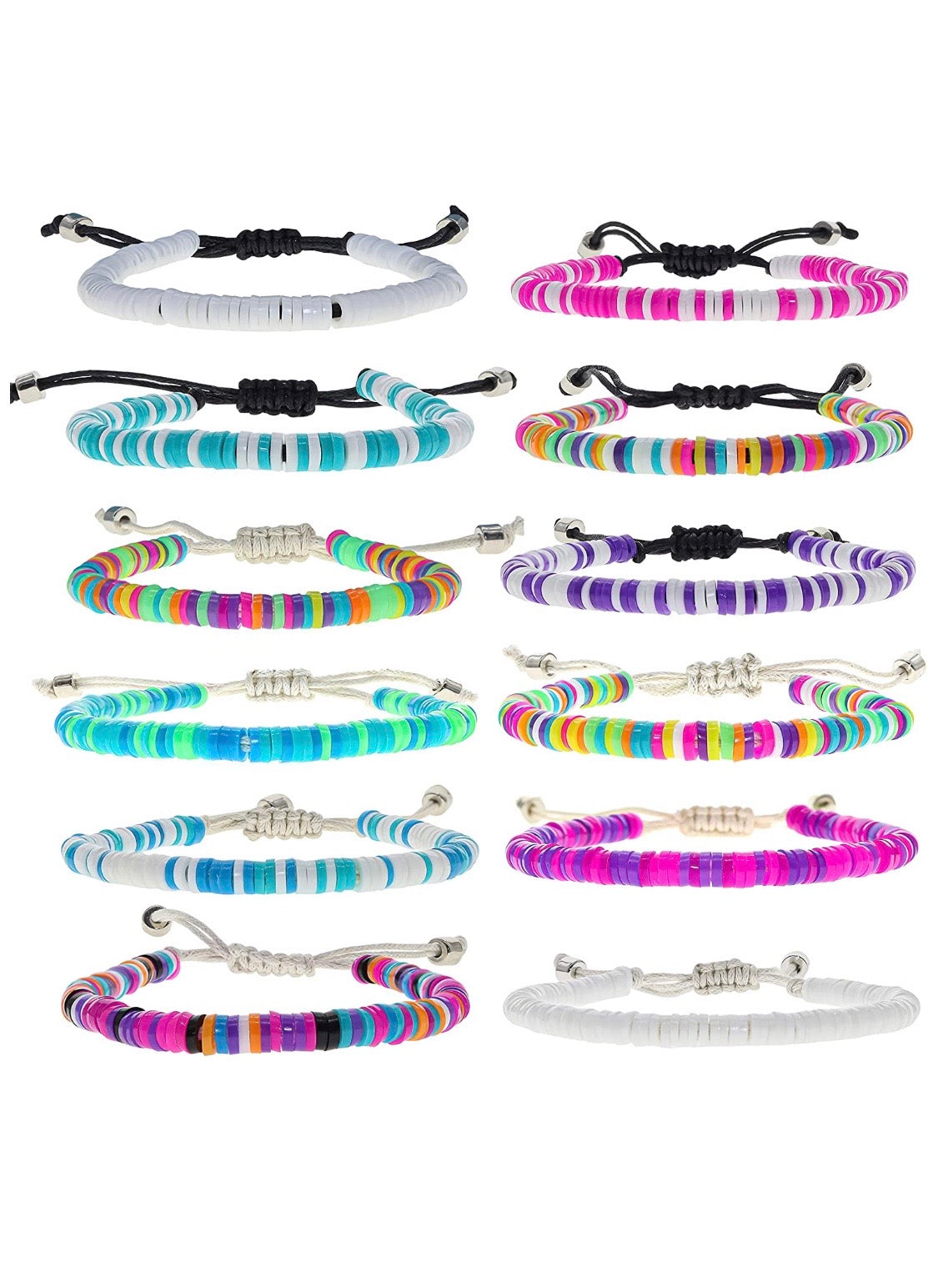 A vibrant collection of adjustable beaded bracelets featuring colorful patterns and lively designs.