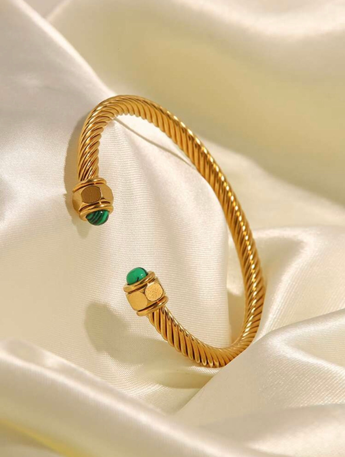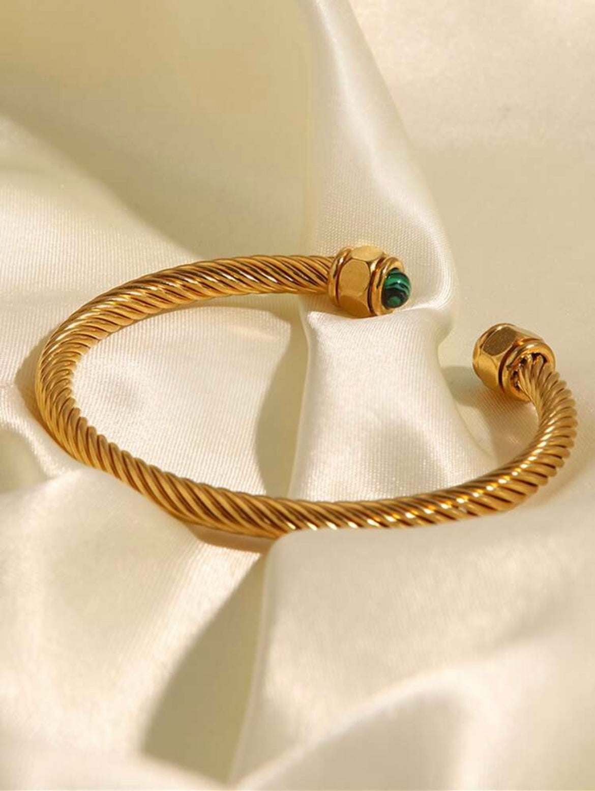 The bracelet is a gold-toned, open-ended cuff, featuring a twisted rope design,modern style.