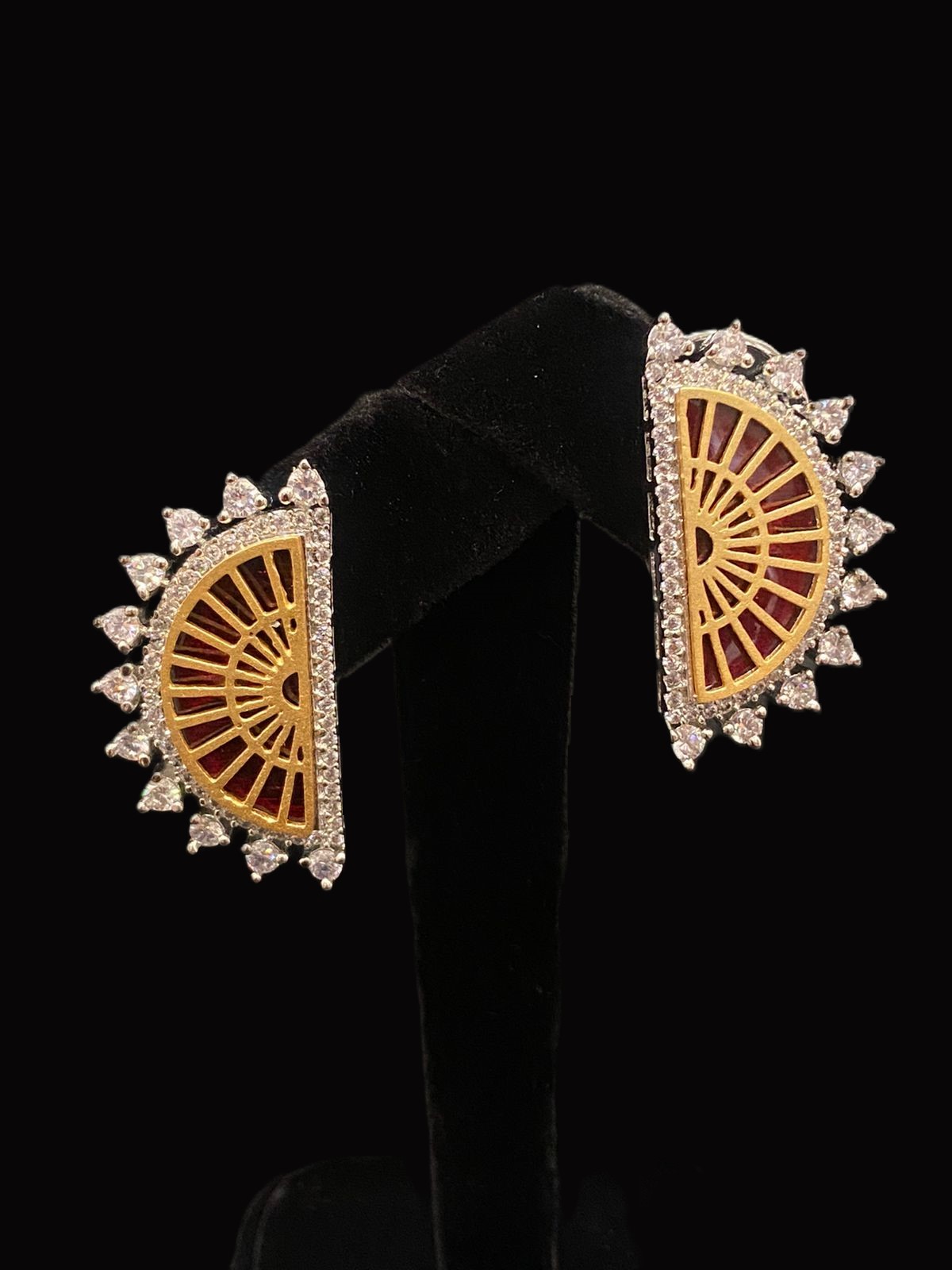 Chic earrings showcase bold pink beads suspended on twin golden chains, offering a stylish and graceful sway perfect for brightening up any outfit.