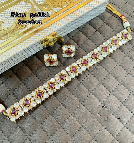 A handcrafted luxurious regal set studded with Ruby red & clear crystals paired with elegant studs for the effortless royal in you.