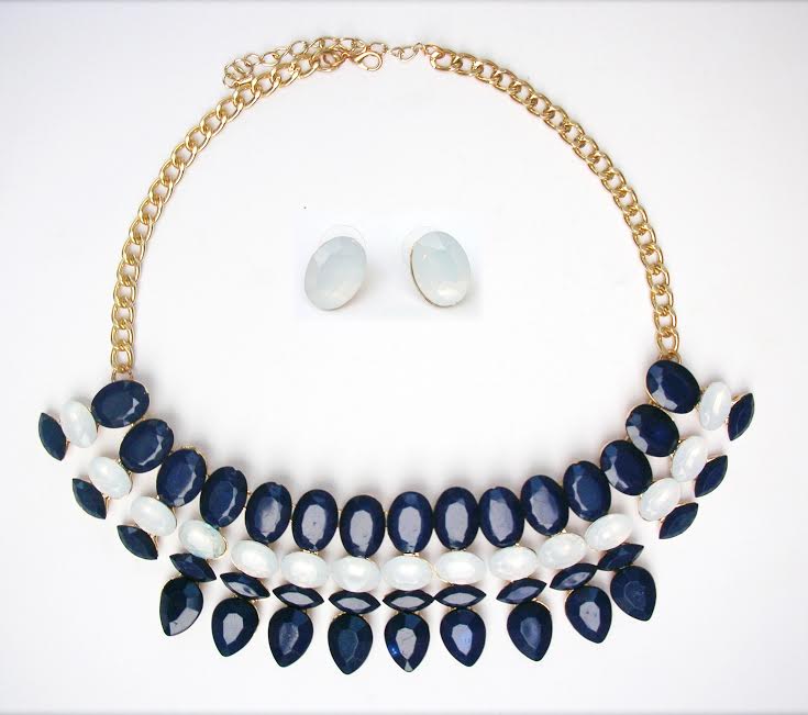 Smooth white ovals paired with glossy dark blue stones, framed in gold-timeless sophistication.