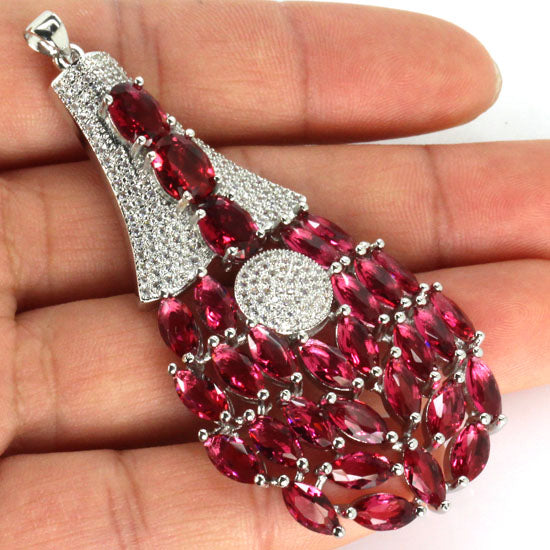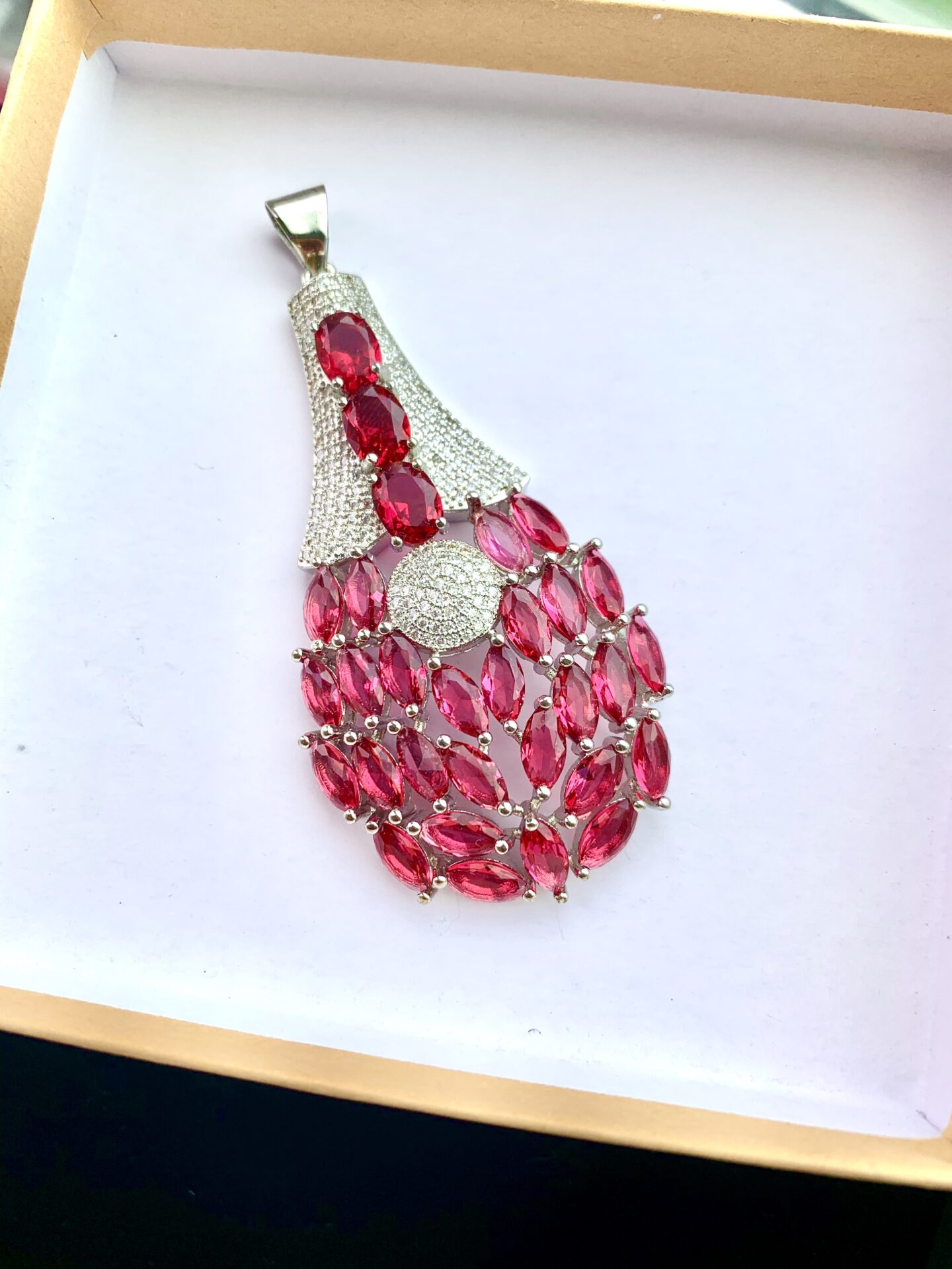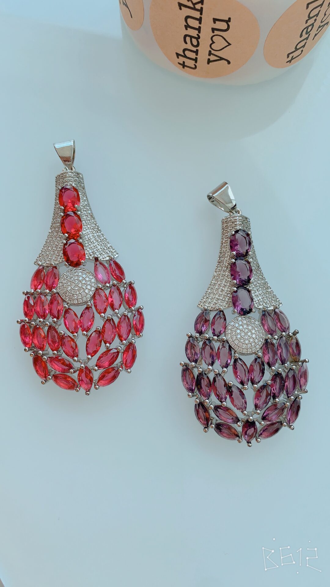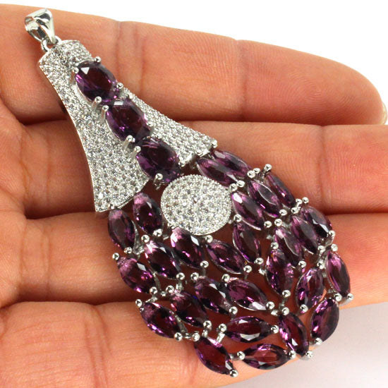 A silver pendant with cascading oval purple gemstones and sparkling clusters-radiant and refined.
