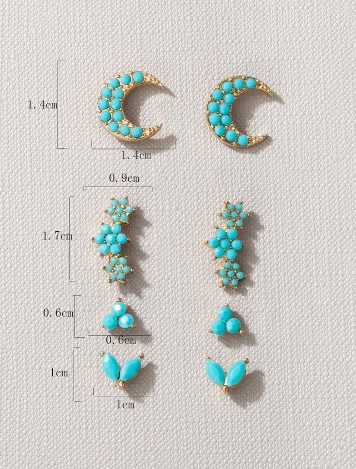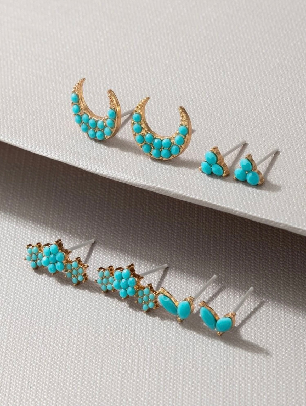 Turquoise and gold colored design studs, simple and elegant appearance.