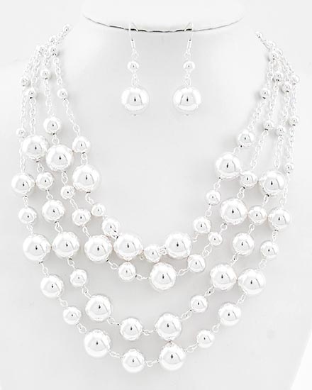 Gracefully layers strands of polished silver beads in varying sizes, radiating understated elegance and refined brilliance.