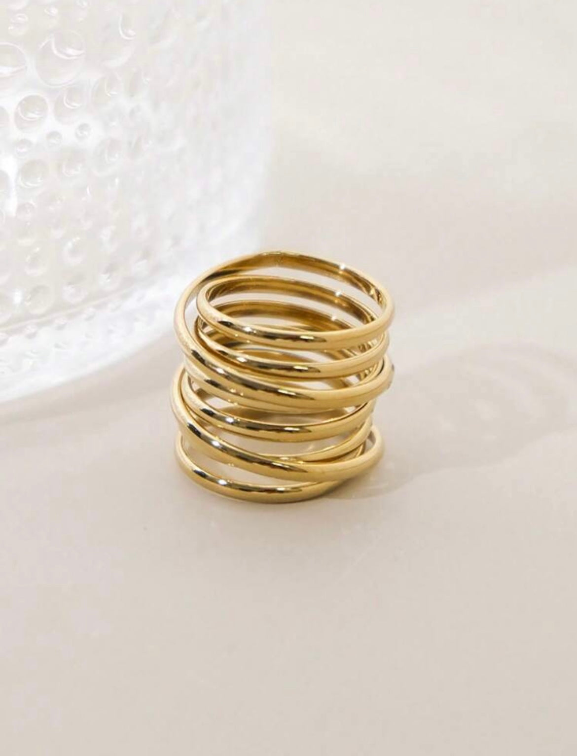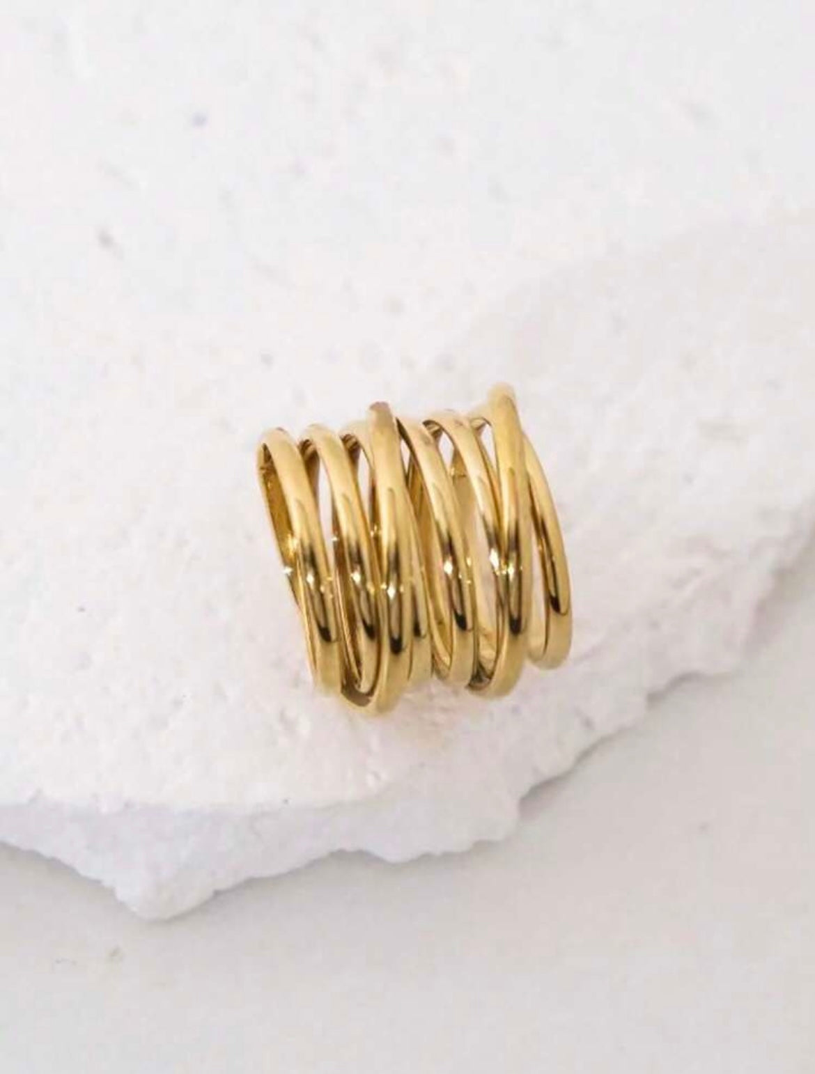 The ring is a spiral-style ring, creating a layered, textured look, elegant and eye-catching design.