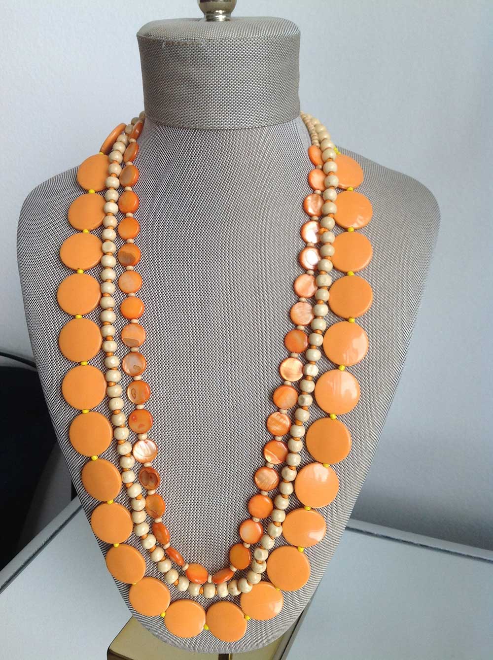 A charming set of layered necklaces featuring vibrant orange beads paired with soft beige accents, creating a bold yet harmonious design.