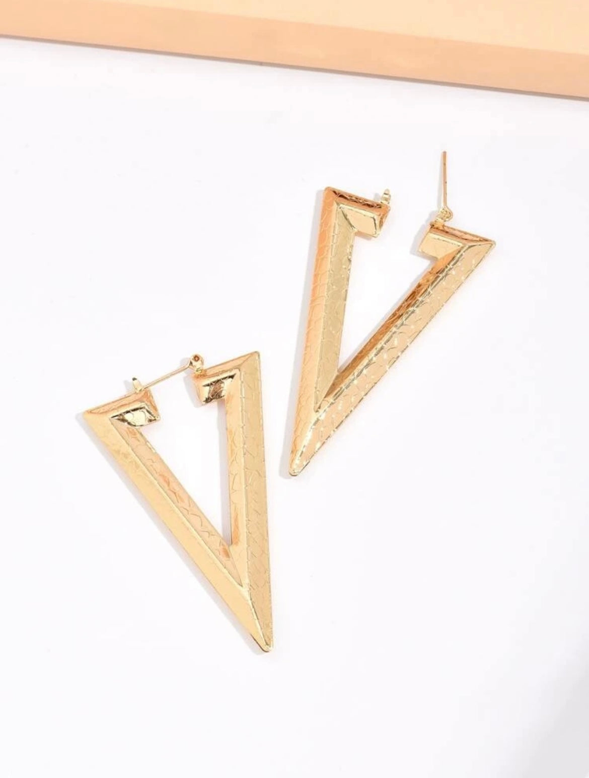 The earring is a gold-toned hoops and has tringular shape, trendy, bohemian style, suitable for various occasion.
