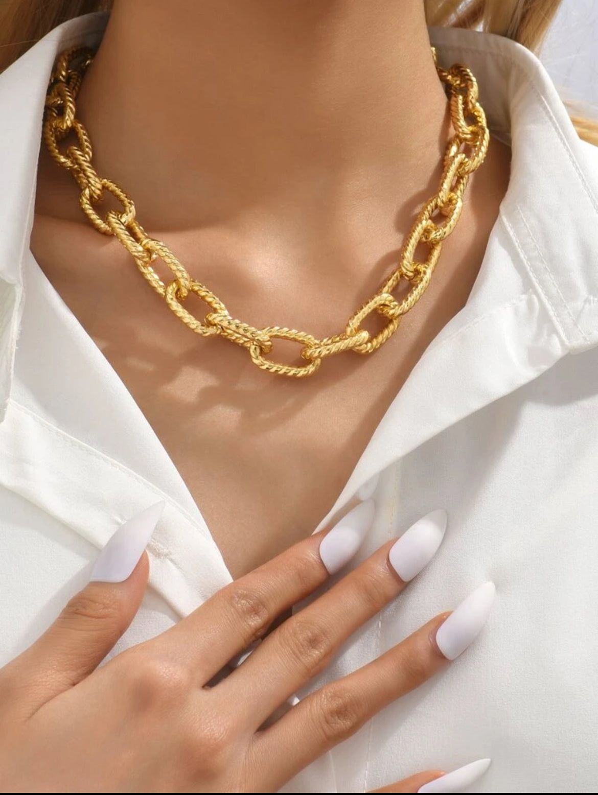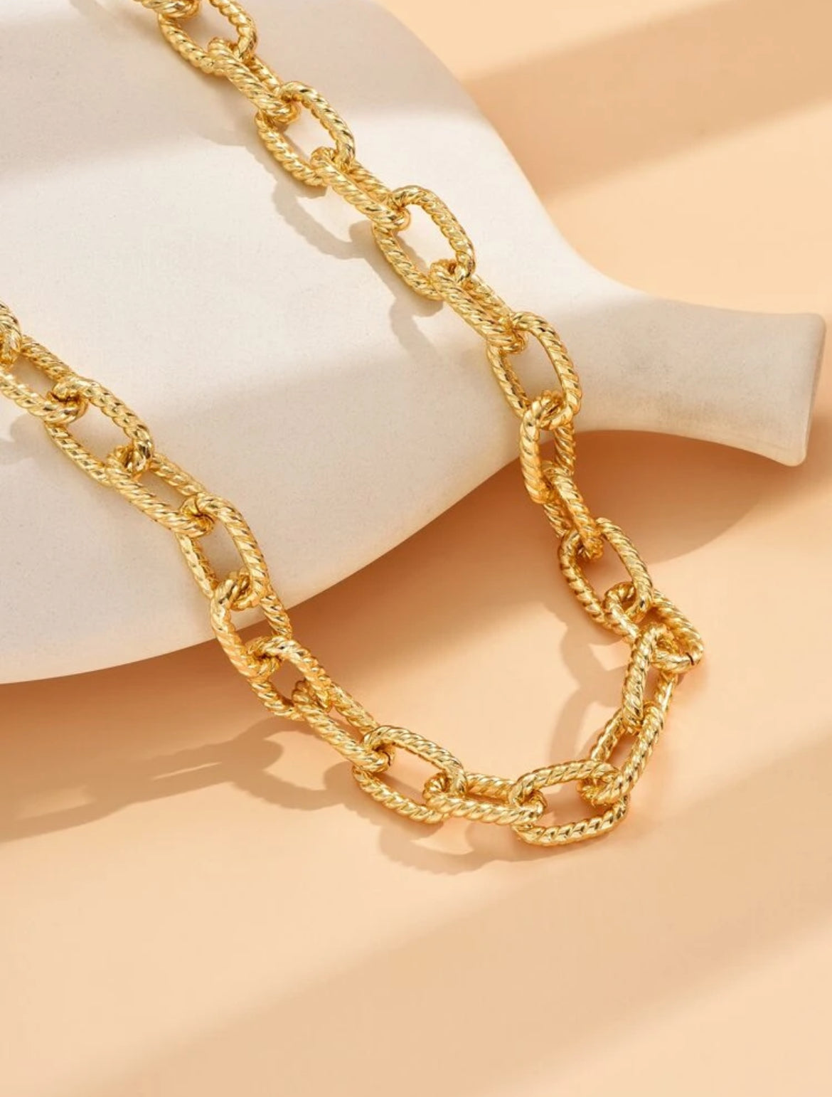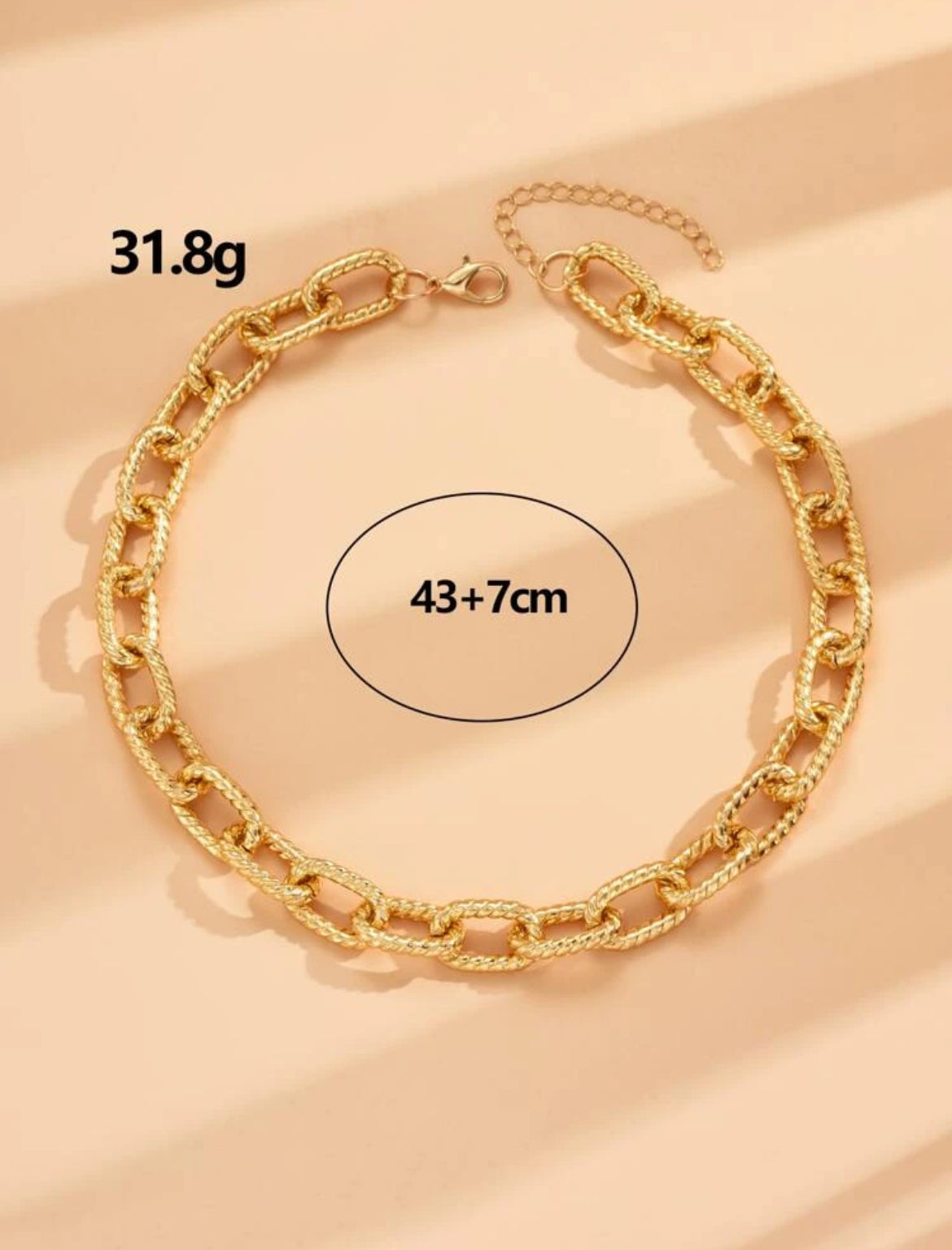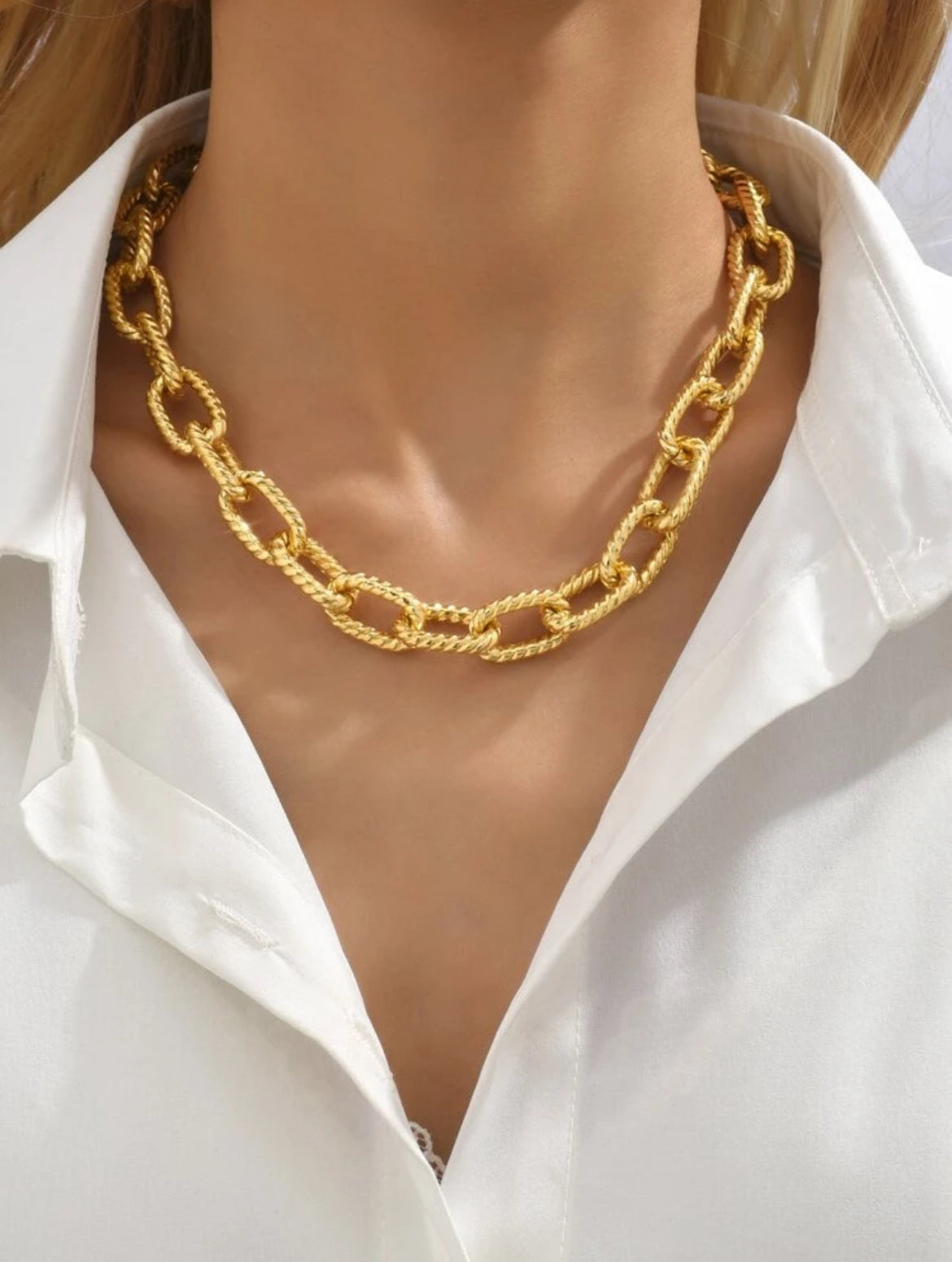 A gold-plated alternating links chain, durable, hypoallergenic.