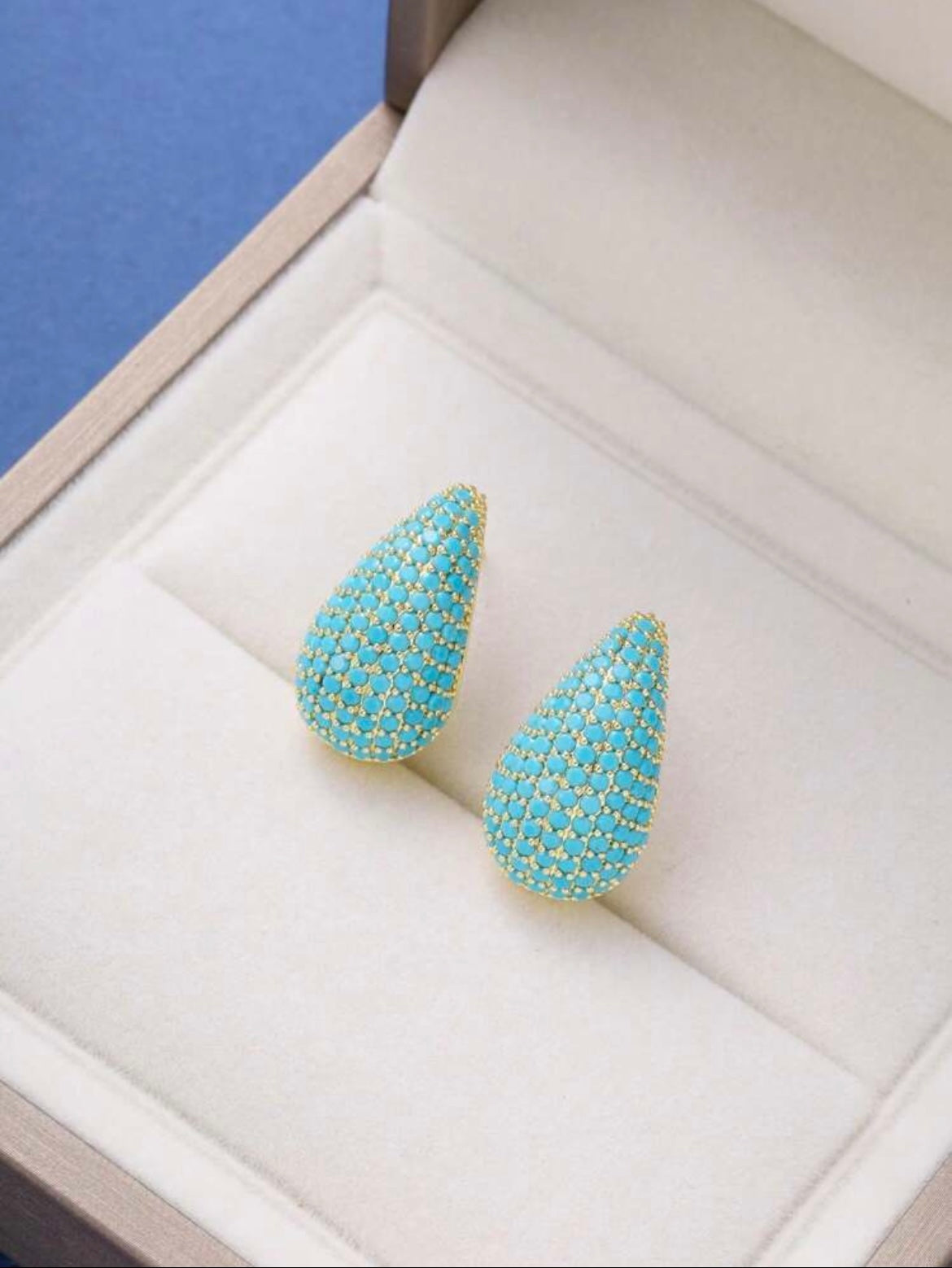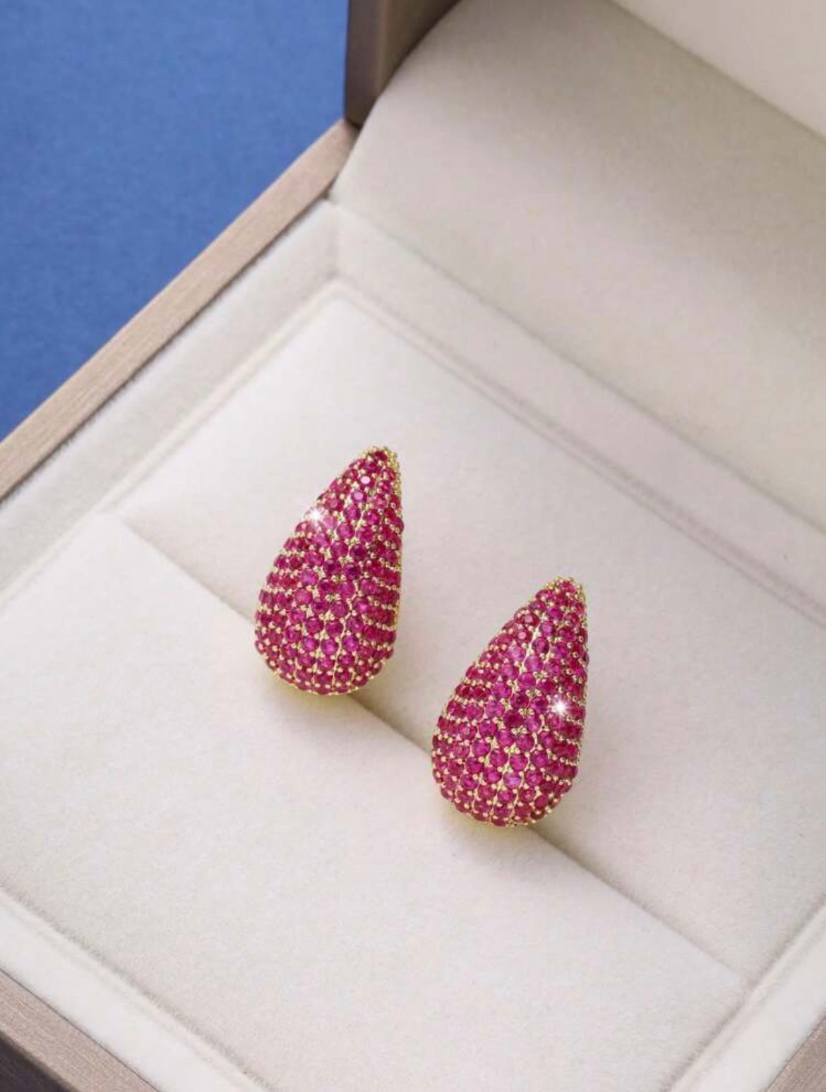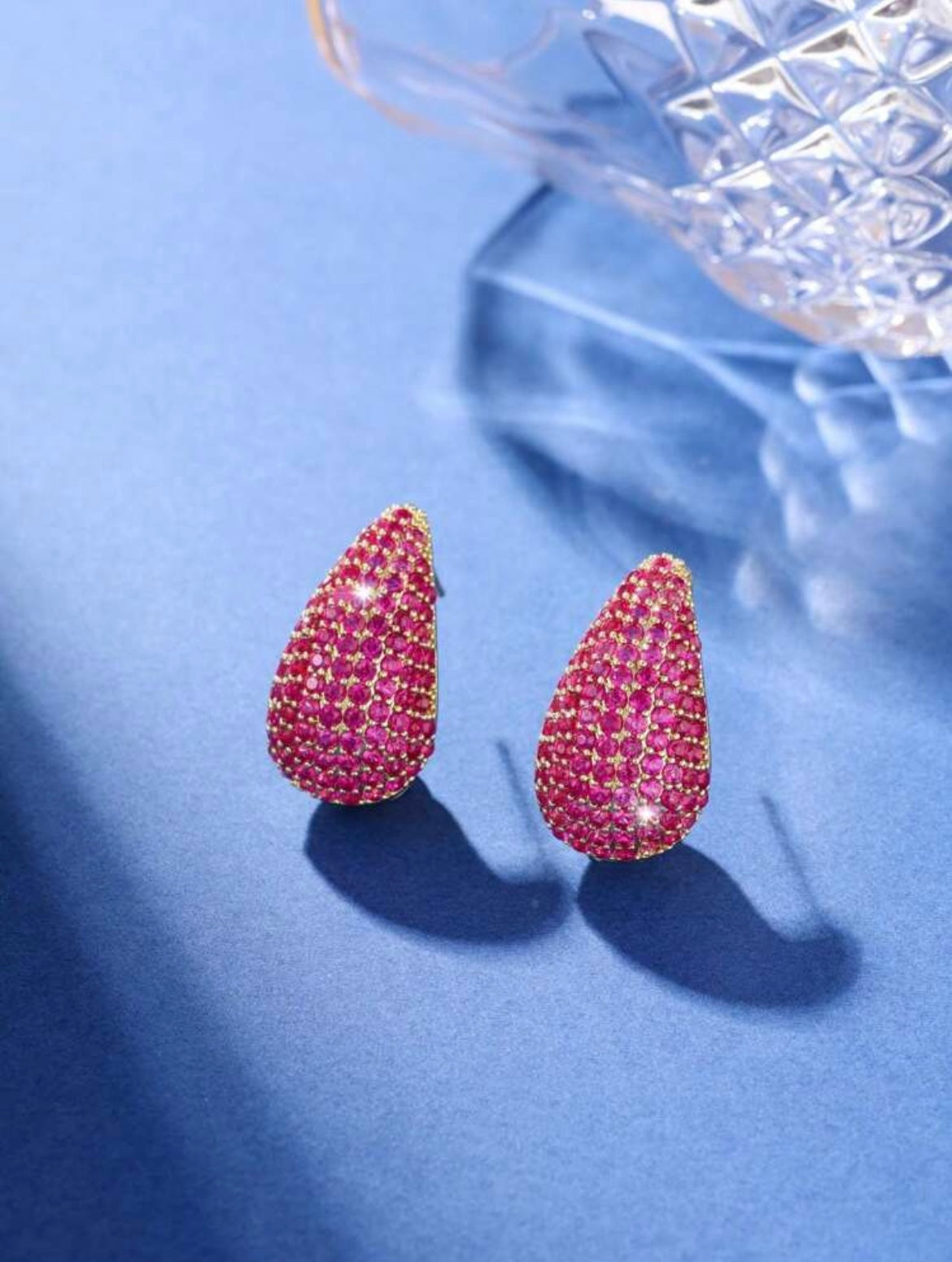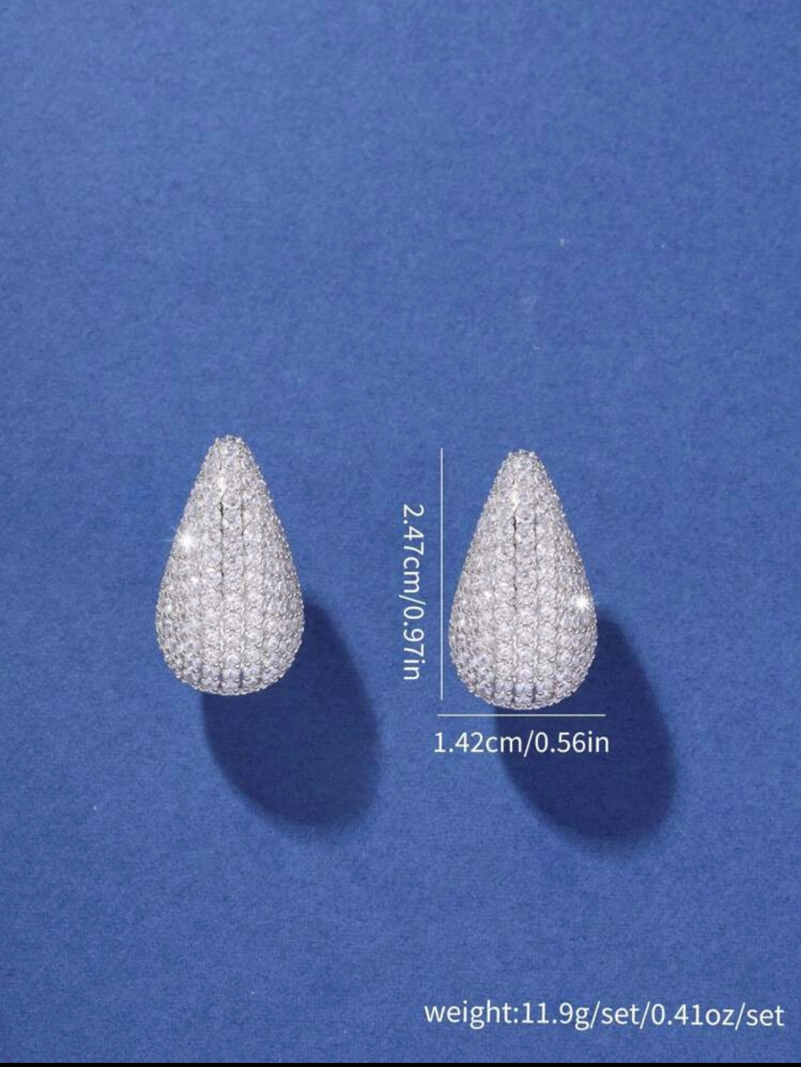 A pair of teardrop-shaped hoops, shimmering appearance, crystalline texture.